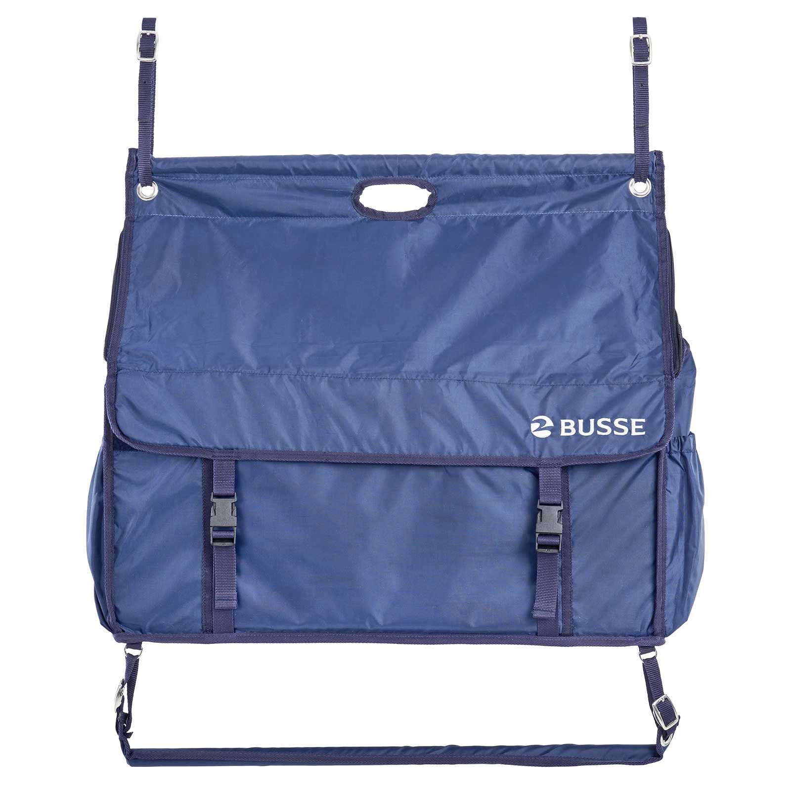 Den praktiska Rio Pro boxväskan från Busse är en extremt robust väska att hänga upp för ren och strukturerad förvaring av många tillbehör i stallet. Filtar, stövlar, klockor, putsutrustning, sprayer, krämer och mycket mer kan förvaras i den praktiska boxväskan. Stallväskan kan snabbt och enkelt fästas på stängerna på stallfronten med hjälp av remmar. För att förhindra att damm kommer in i väskan kan smutsskyddet stängas med dragkedjor och kardborreband. Busse stallväska har en stor inredning med förstärkta väggar, justerbar skiljevägg och ett förvaringsfack. Praktiska ytterfack ger extra förvaringsutrymme för små tillbehör. En extra stång på undersidan är idealisk för att hänga och torka filtar, sadelunderlag, damasker osv.