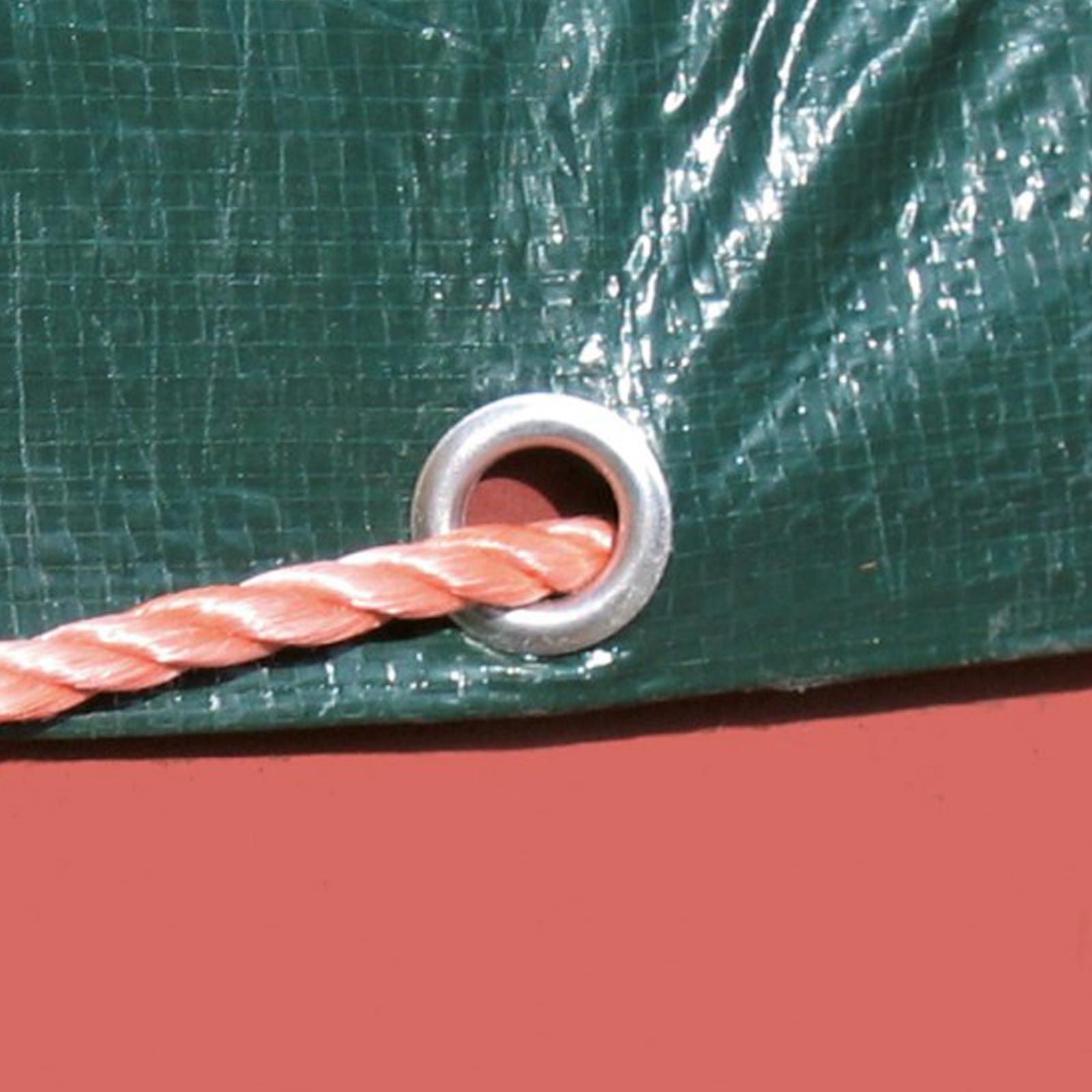 Tygplanen har öglor med 100 cm mellanrum så att den kan fästas på ett säkert och stabilt sätt. Dessutom är den förstärkt i kanten. Den här presenningen är lätt att fästa och ta bort och kan stuvas undan för att spara utrymme när den inte används.