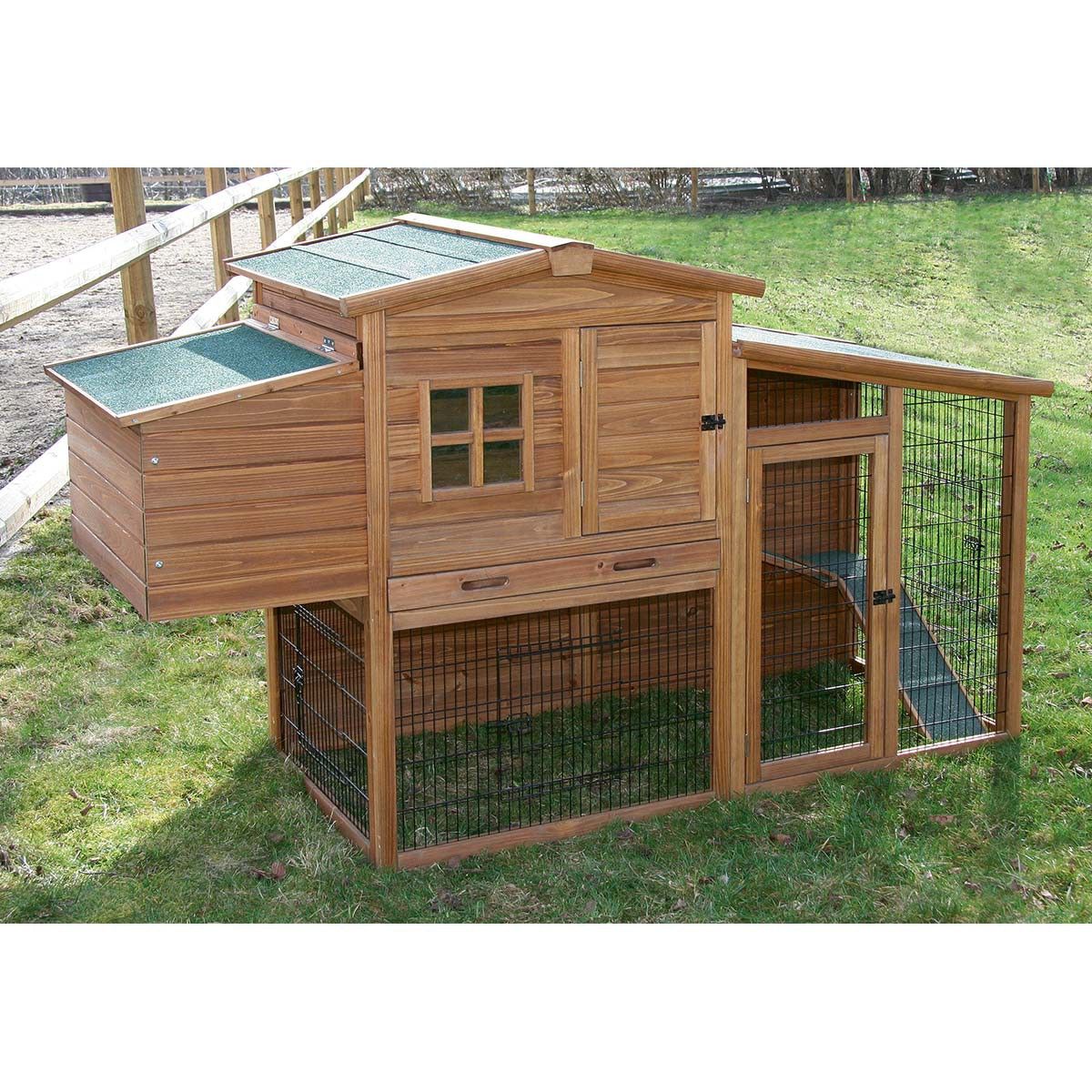 Det monterbara värpboet för fjäderfä består av en förlängning och sittpinnar. Den kan också fästas på Fortuna 82813 små djurhage. Höns letar alltid efter en säker plats att lägga sina ägg på. Därför är det särskilt viktigt att hönorna erbjuds ett värpningsbo. Dina höns kommer att älska det här LEgenestet i trä. Konstruktionen och monteringen är enkel och går på några sekunder.