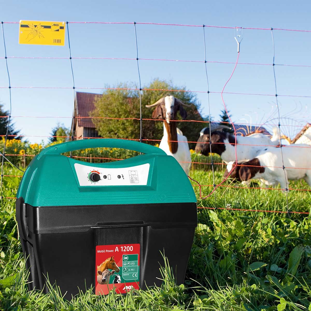 Mobil Power A 1200 elstängsel är en universell, mycket kraftfull 12-volts batteridriven enhet för mobil användning.