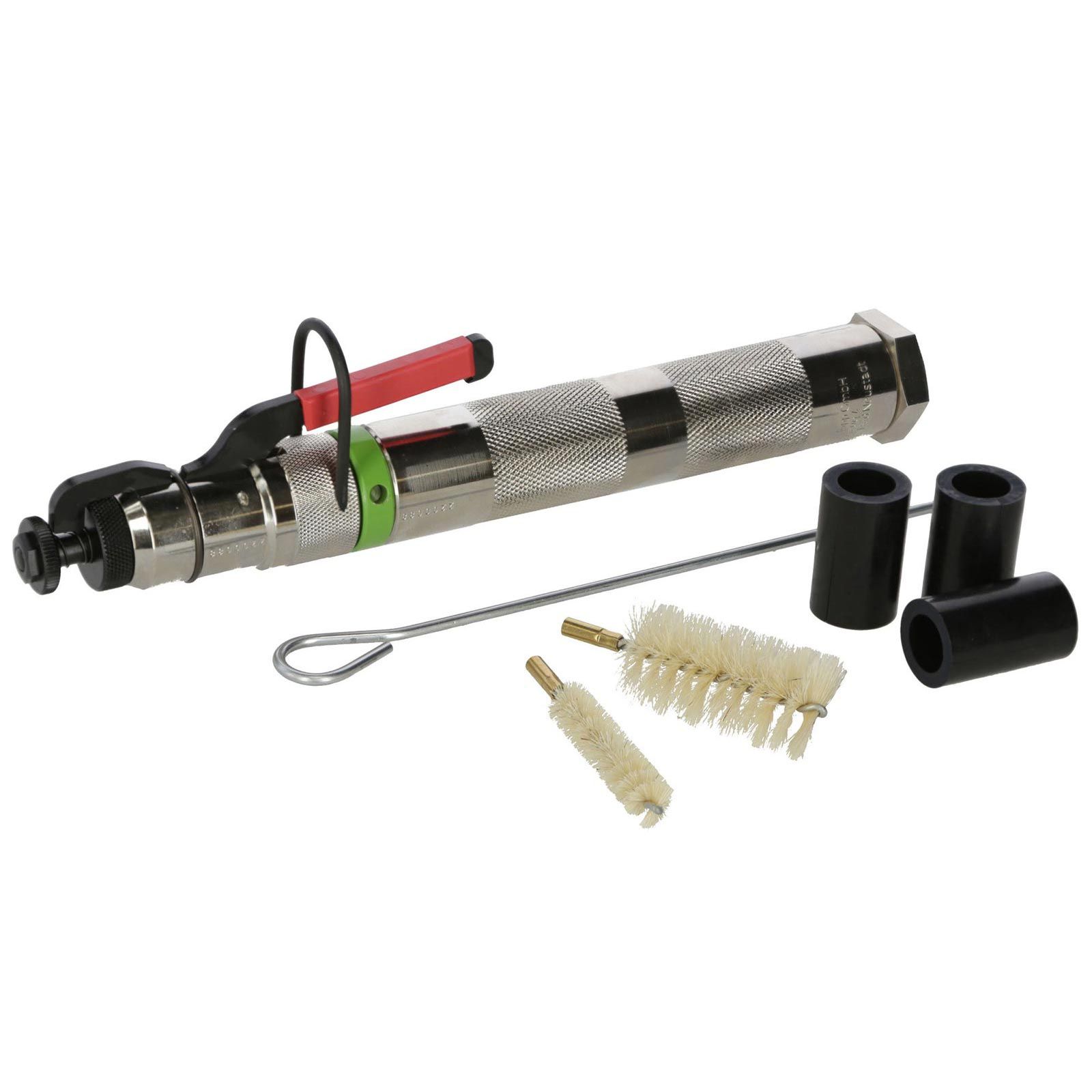 Den högkvalitativa, förnicklade konstruktionen i solid konstruktion garanterar långvarig och robust användning. Bedövningsapparaten för nötkreatur är utrustad med en praktisk sexkant som förhindrar att enheten rullar oavsiktligt. Detta innebär att du alltid har full kontroll över enheten under användning. Det integrerade säkerhetsskyddet förhindrar oavsiktlig frigöring av spaken och ökar säkerheten.