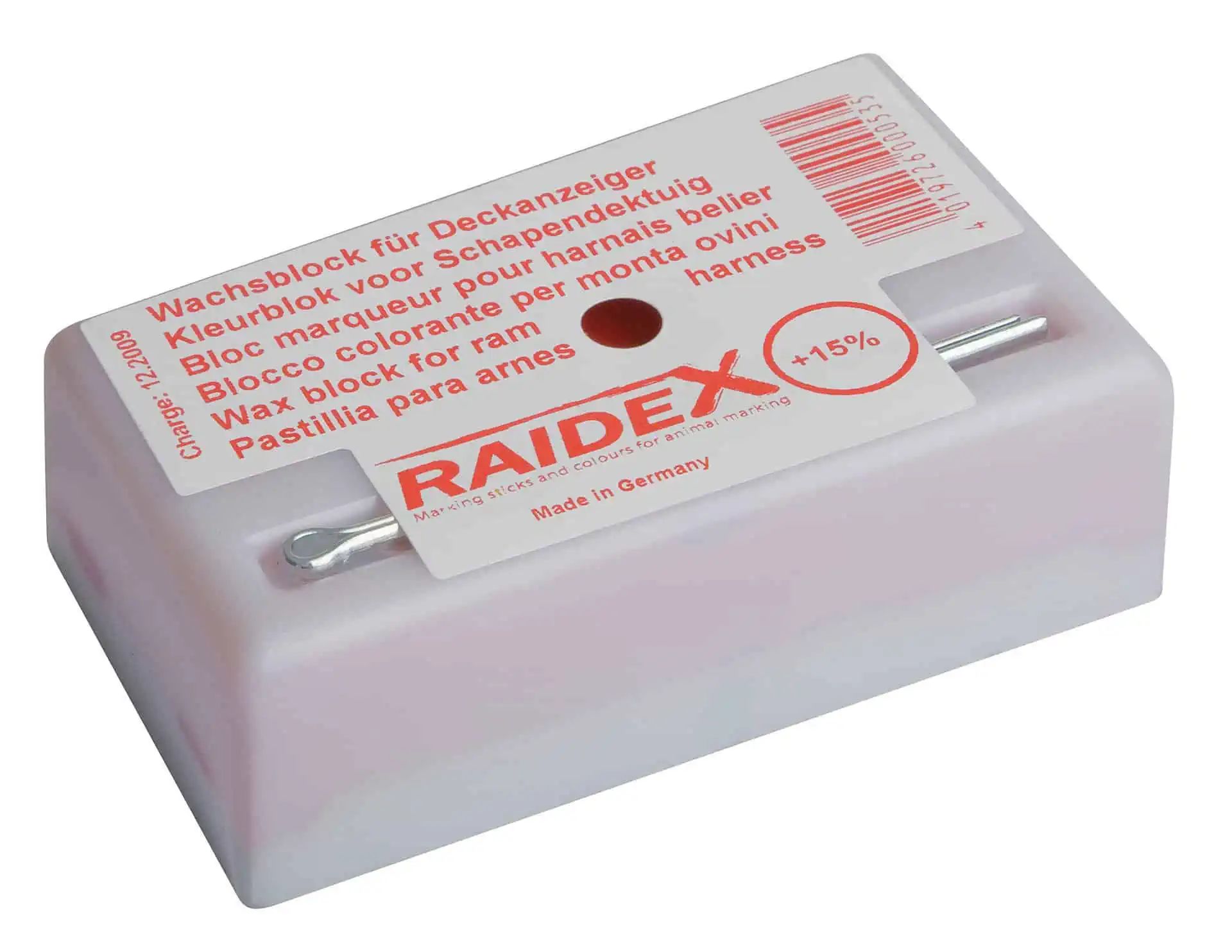 The Raidex Color Block is an essential tool in sheep breeding. It is attached to the ram harness using the wax block, leaving a clear marking on the back of the ewes during mating. This allows you to accurately determine the lambing time.