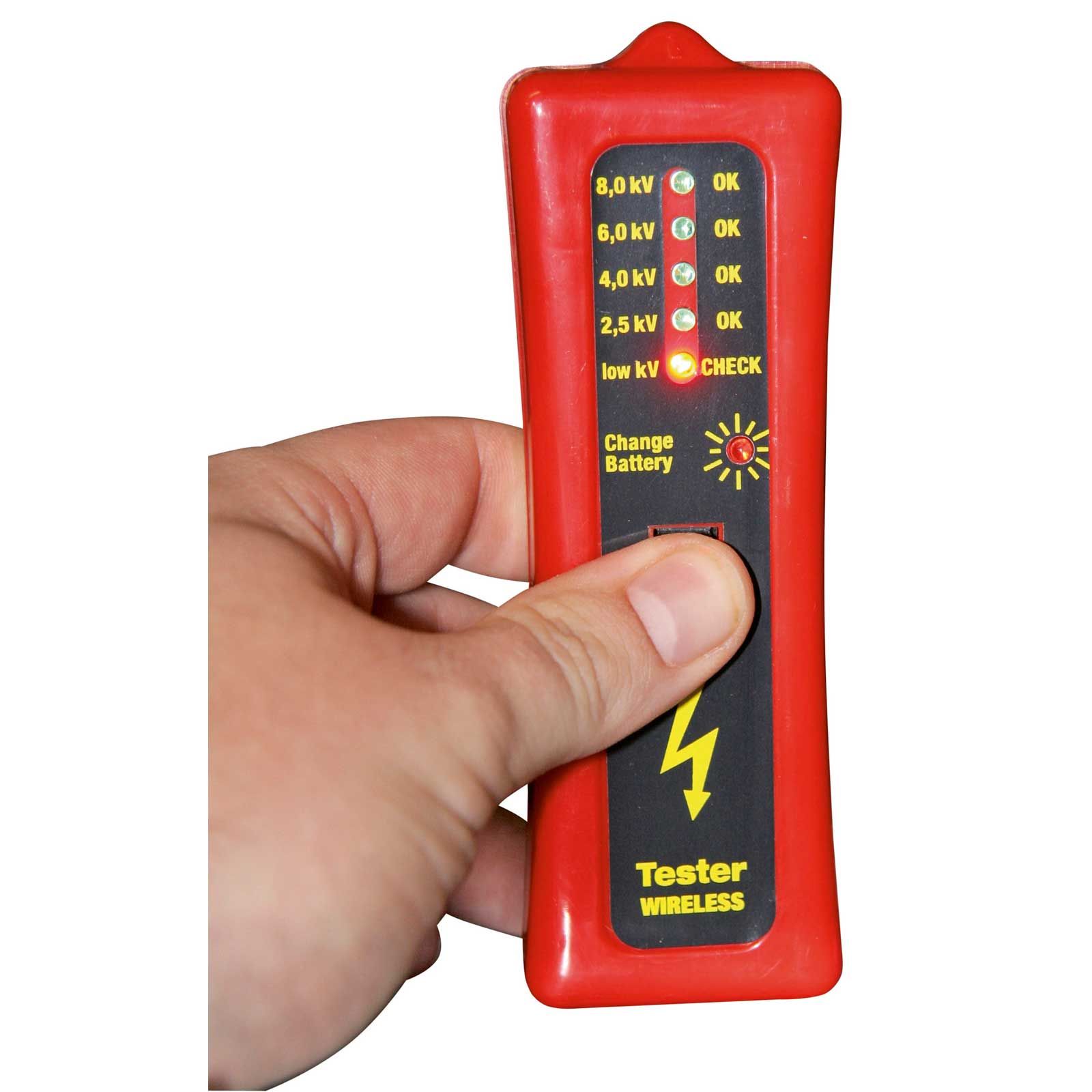 - visar spänningen med fyra lysande gröna dioder i fyra steg: 2500 - 8000 Volt.