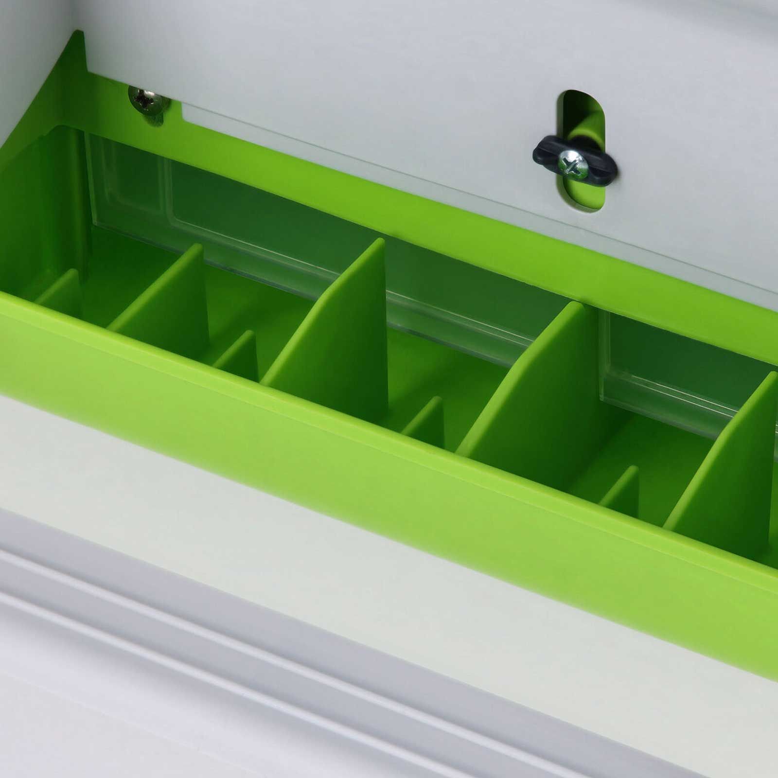 - Höjdjusterbar skiljevägg möjliggör justering av fodertillförseln