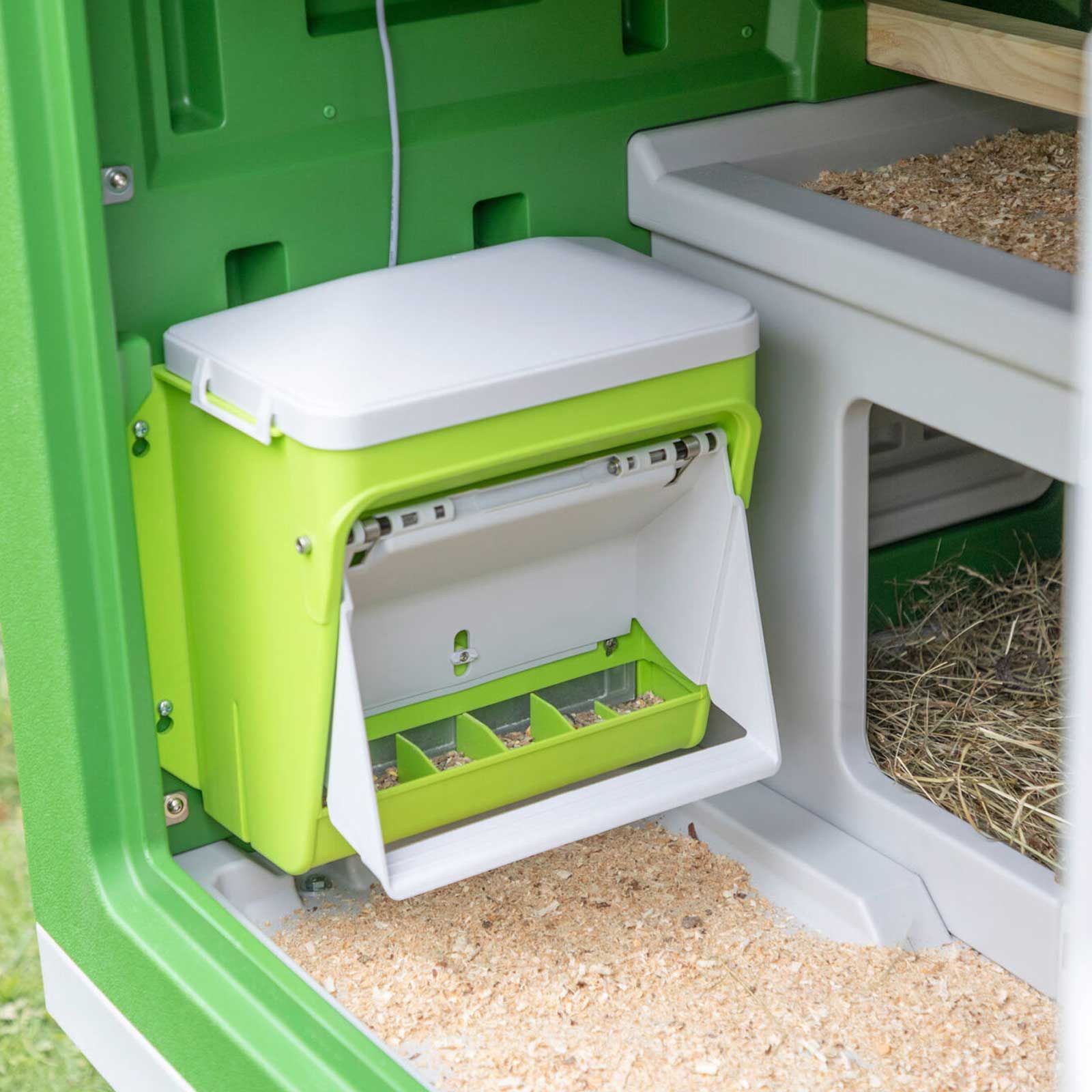 SmartCoop-kompatibel: Mataren kan eftermonteras med SmartCoop-mataren med nivåsensor. Dessutom ökar SmartCoop-förlängningsfästet volymen med 7,5 kg.