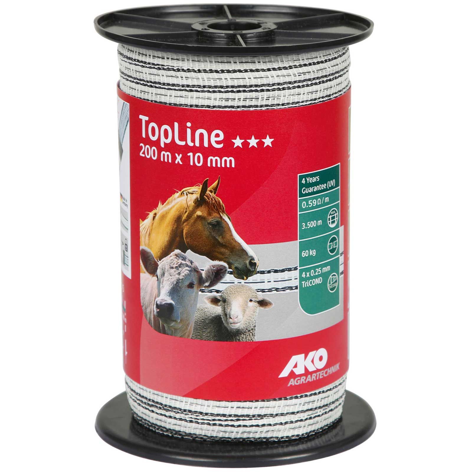 AKO Betesmarkstängselband TopLine 200m, 10mm, 4x0,25 TriCOND, vit-svart