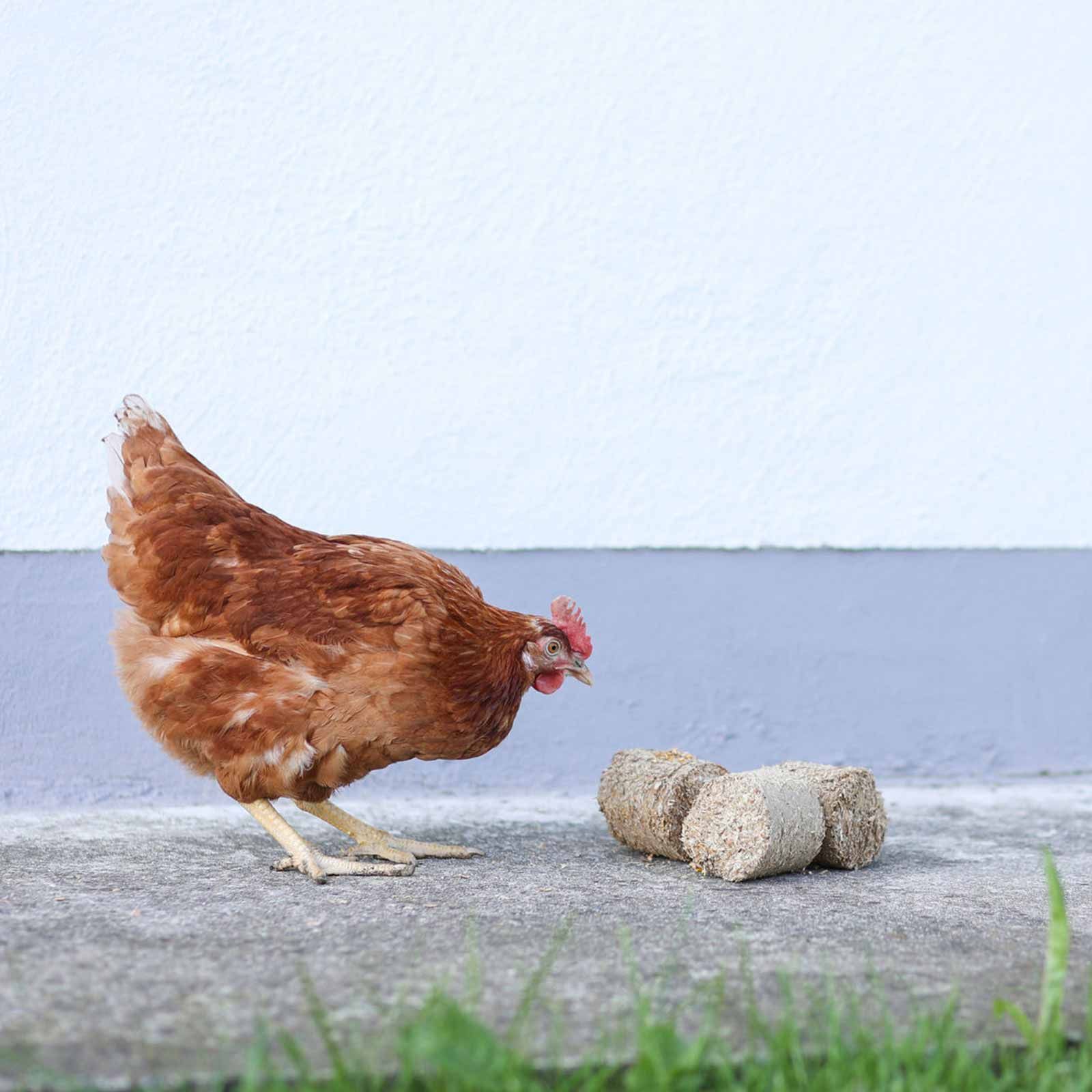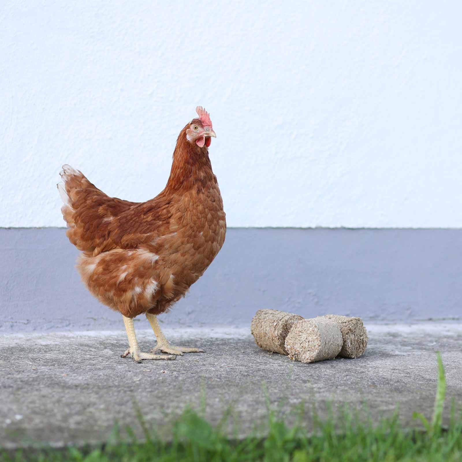 Du kan välja att använda briketterna av speltskal antingen på marken som spridningsmaterial som spridningsmaterial eller att placera dem i en hängande hängande korg. Briketterna sönderdelas gradvis när kycklingarna leker och fungerar sedan som absorberande strö. Detta uppmuntrar inte bara till aktivitet, utan ger också en hygienisk och hygienisk och bekväm miljö skapad.
