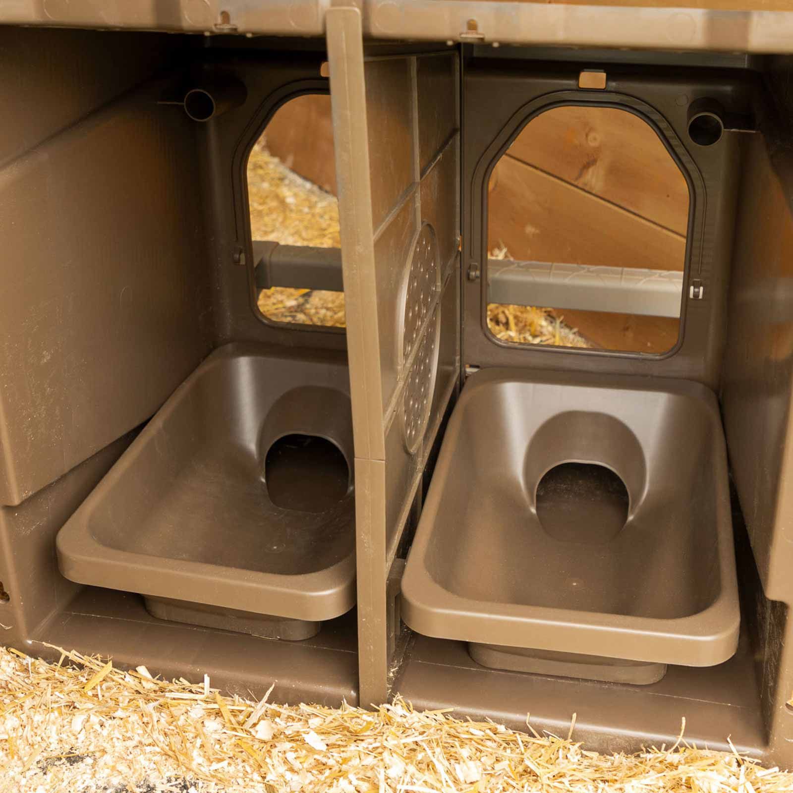 Häckningsbrickan för det dubbla boet gör att det kan användas utan strödetta underlättar inte bara rengöringen, utan har också hygieniska fördelar för dina kycklingar.