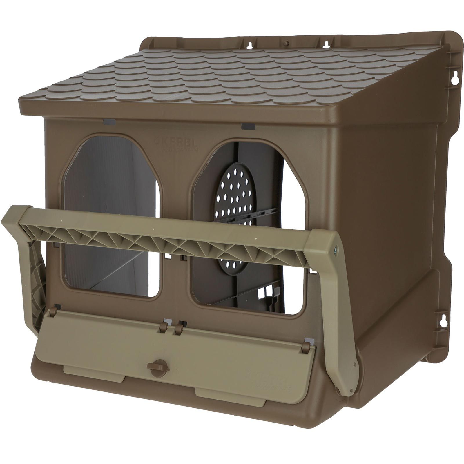 De generösa måtten på inredningsutrymmet ger tillräckligt med utrymme även för stora hönsraser. Av säkerhetsskäl förhindrar det sluttande taket att kycklingarna sitter på taket.