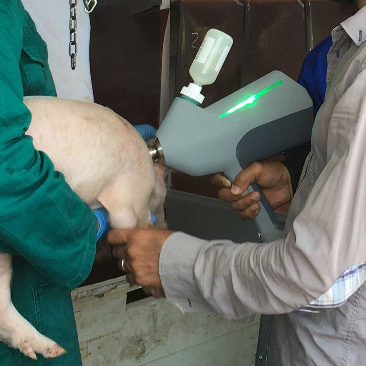 Den första nålfria handhållna enheten för intramuskulär vaccinering av smågrisar.