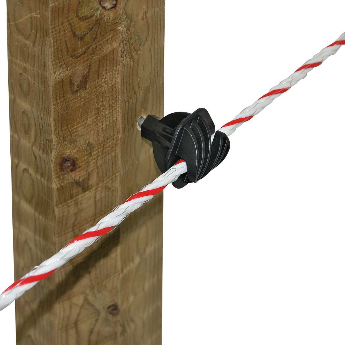 Extremt robust isolator av brottsäker plast för att skruvas in med trätråd.
