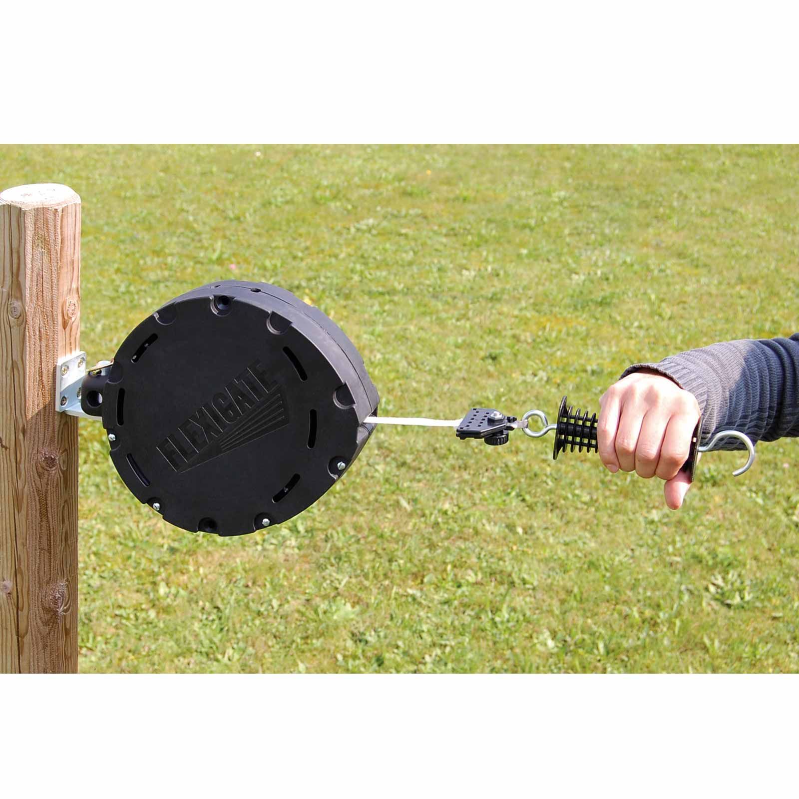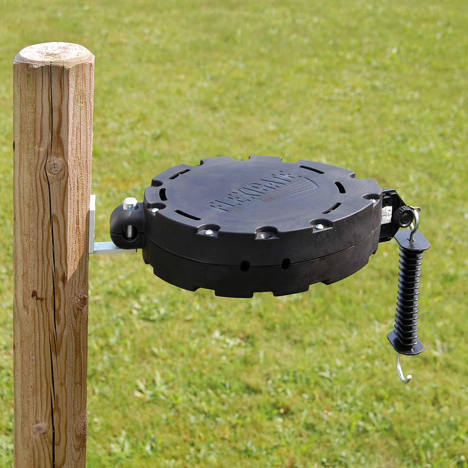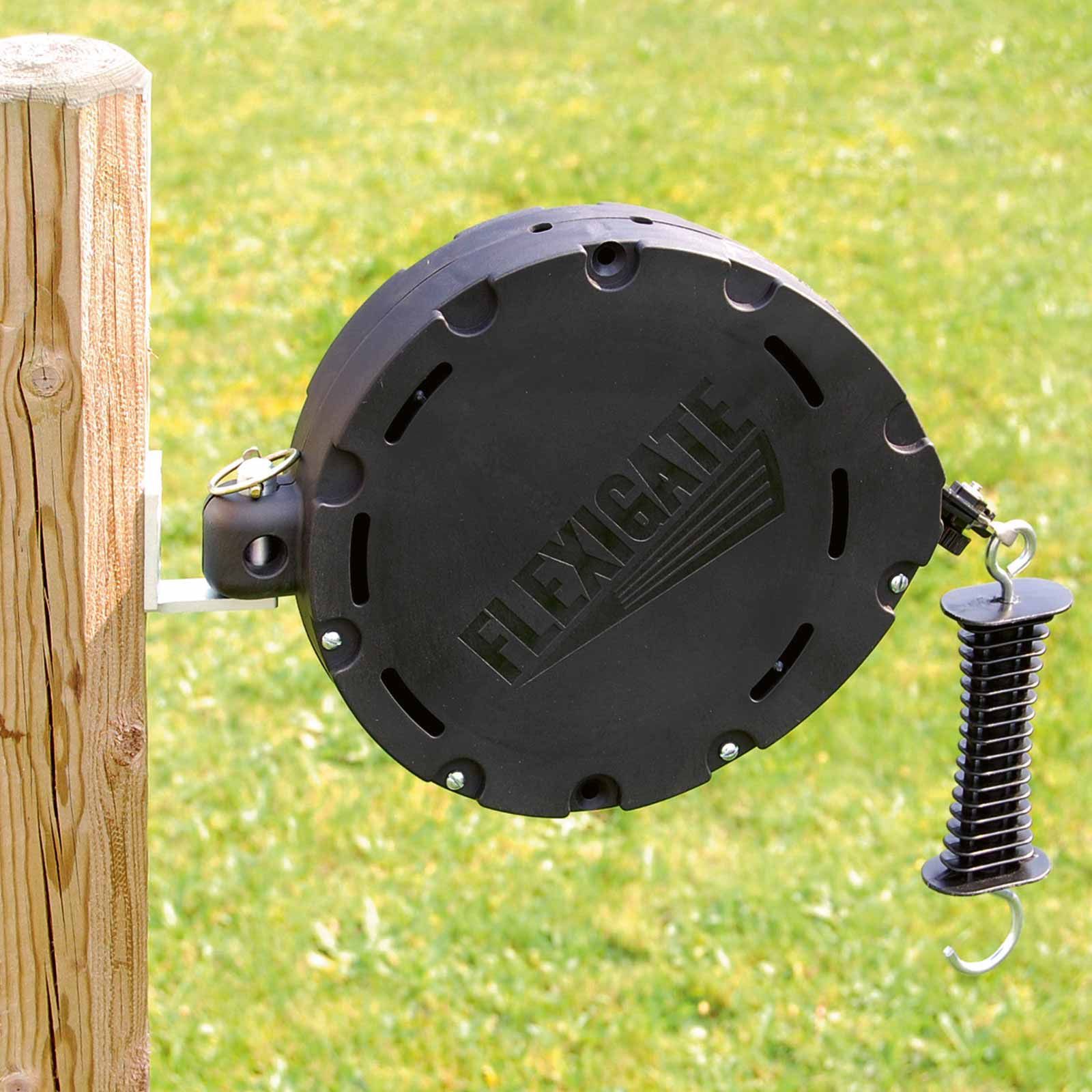 flexible grindsystem flexi Gate är lätt att installera, robust och hållbart. Varje gång grinden öppnas rullar en stålfjäder automatiskt upp stängselbandet och ger därmed ett optimalt skydd mot nedsmutsning. Dessutom finns det inte längre någon fara med ett band som ligger på marken - snubbelrisk adé!
