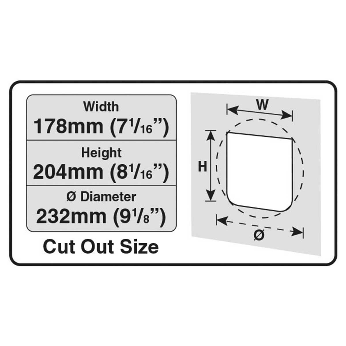 Total storlek (B x H): 248 x 265 mm< br />Utskärningsstorlek (B x H): 178 x 204 mm (DM: 232 mm)