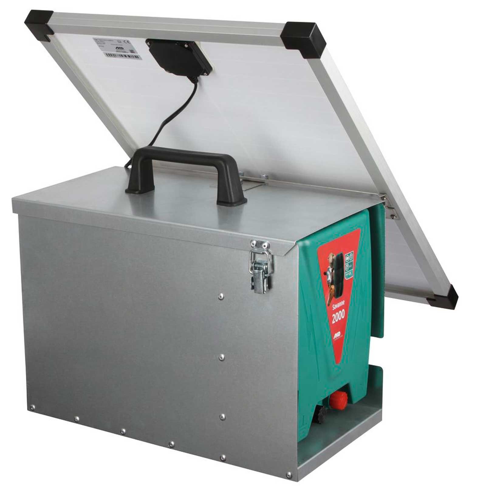 Mobile Power Savanne levereras med en matchande metallbox och finns även som startpaket med eller utan solcellsmodul. Den batteridrivna enheten är idealisk för långa stängselinstallationer med kraftig vegetation samt för hästar, mjölkkor, får, getter, fiskdammar och fjäderfä. LED-indikatorn för stängselkontroll och den separata batterivarningsindikatorn ger alltid information om stängelsystemets status.