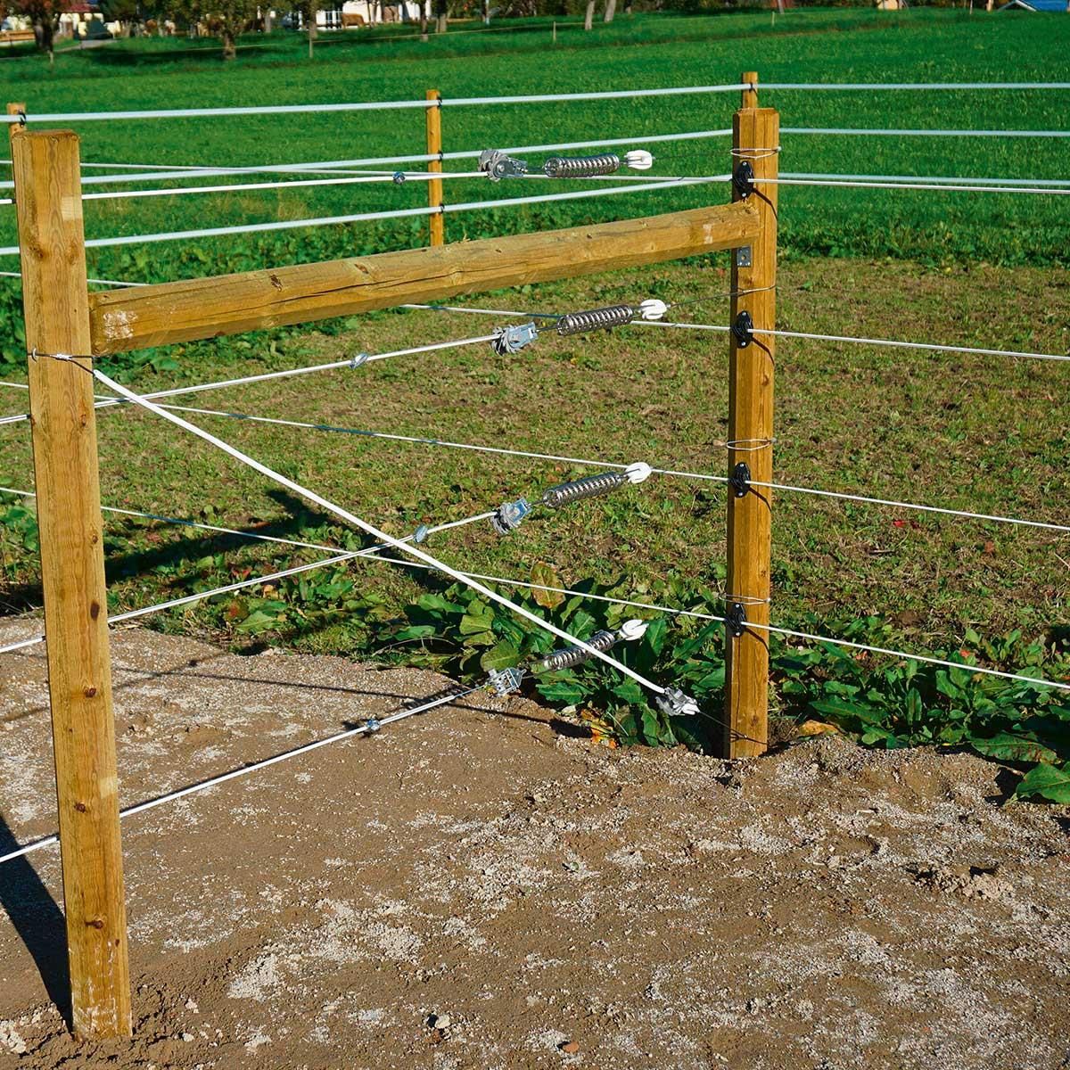 Diagonalförstärkningssatsen är lämplig för diagonalförstärkning av en H-stolpkonstruktion i hörnet och i början eller slutet av stängslet. Förstärkningssatsen är utformad för mycket höga dragkrafter i ledarmaterialet, t.ex. Premium Horse Wire och ståltråd.