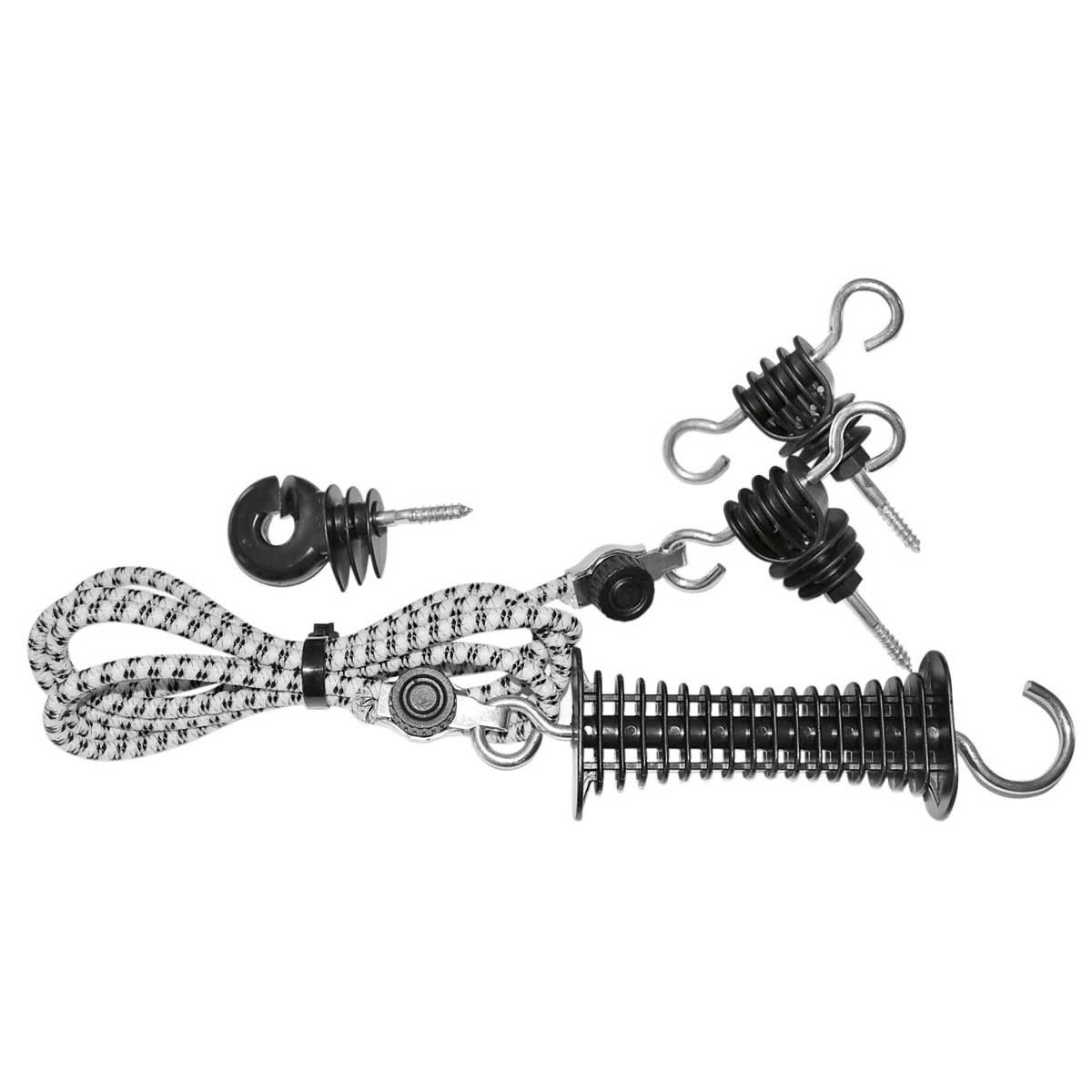 Det här grindhandtaget med ett extremt sträckbart och slitstarkt gummirep är perfekt för att separera paddockar, skapa grindar till betesmarker eller separera andra stallområden. Det robusta gummirepet är försett med 3 x 0,3 mm stora ledare av rostfritt stål och kan därför elektrifieras.
