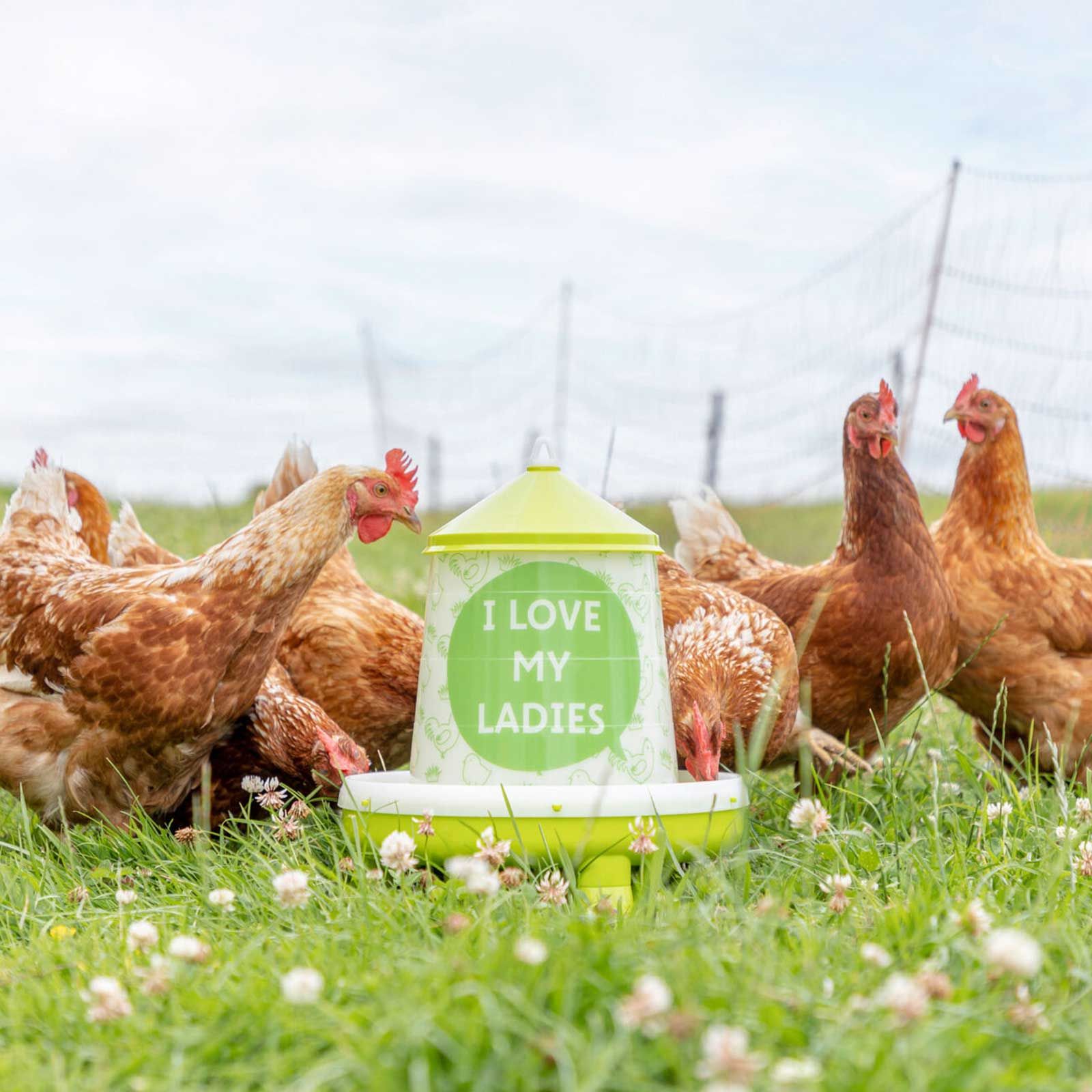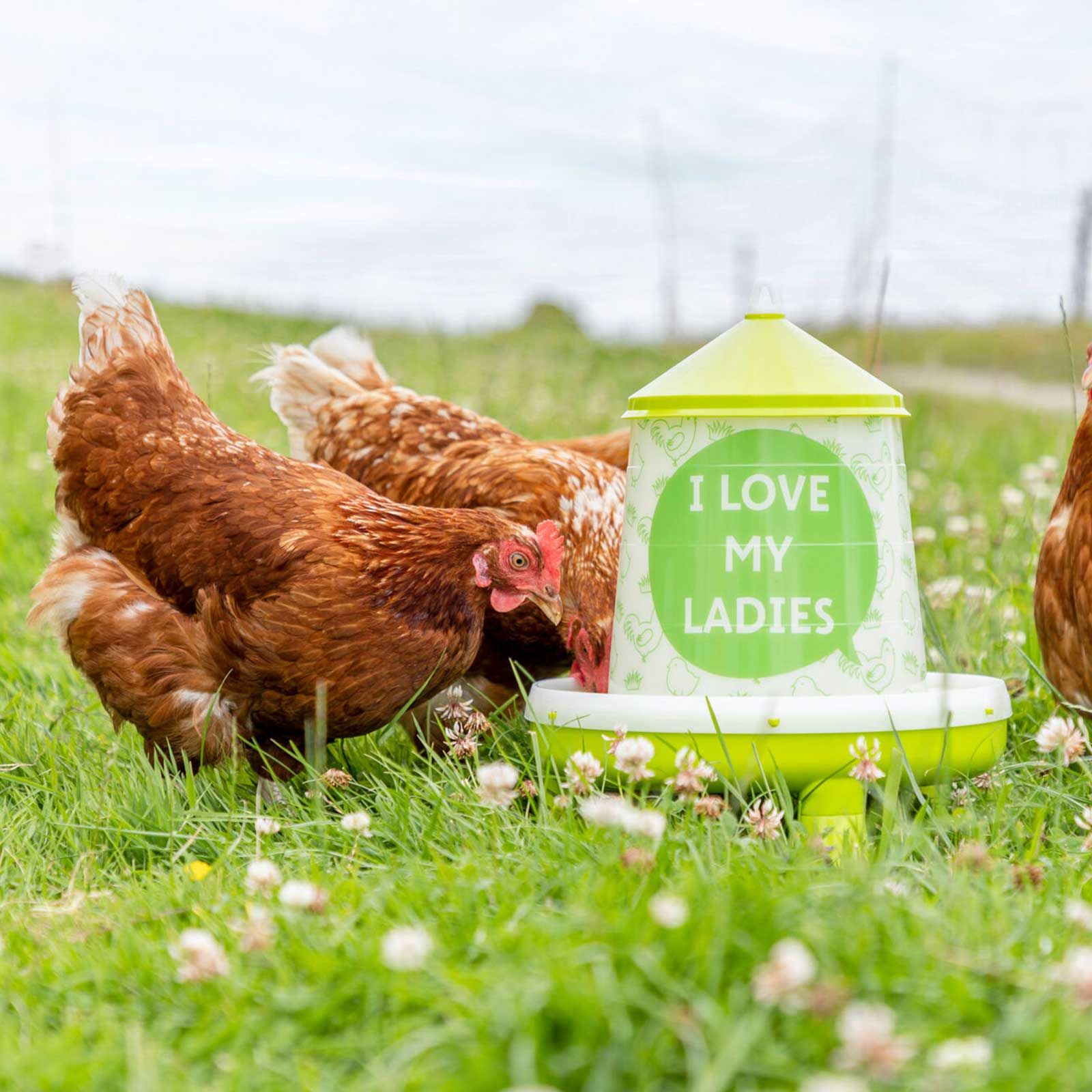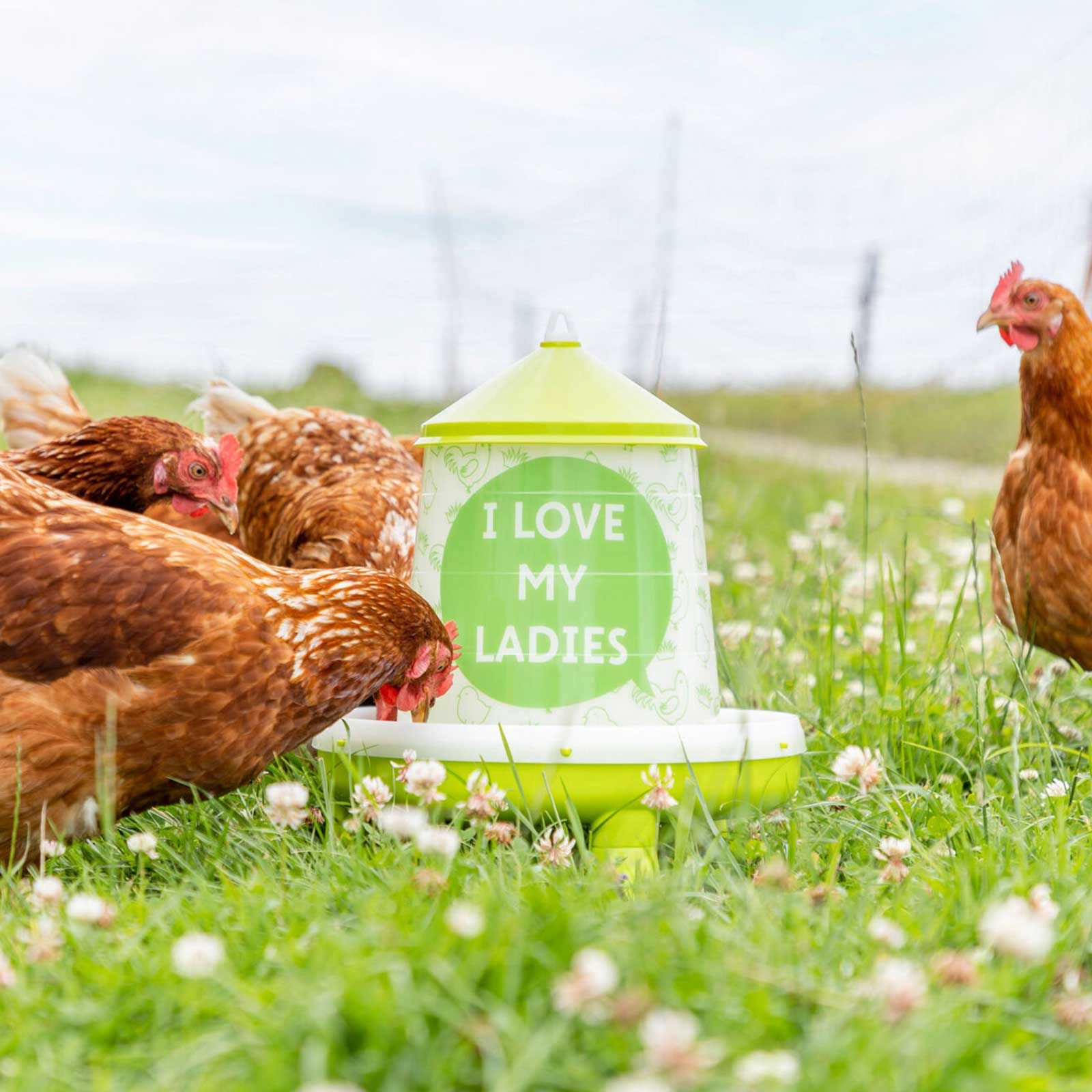 Med kycklingmataren "I love my Ladies" blir utfodringen en enkel uppgift. Njut av fördelarna med automatisk fodertillförsel och tryggheten i att dina höns alltid får det foder de behöver.