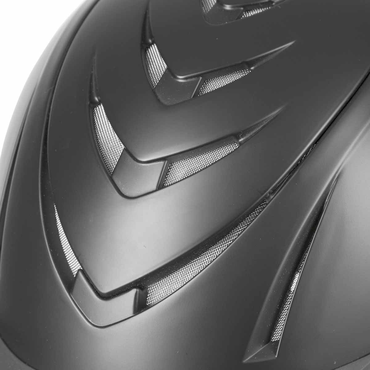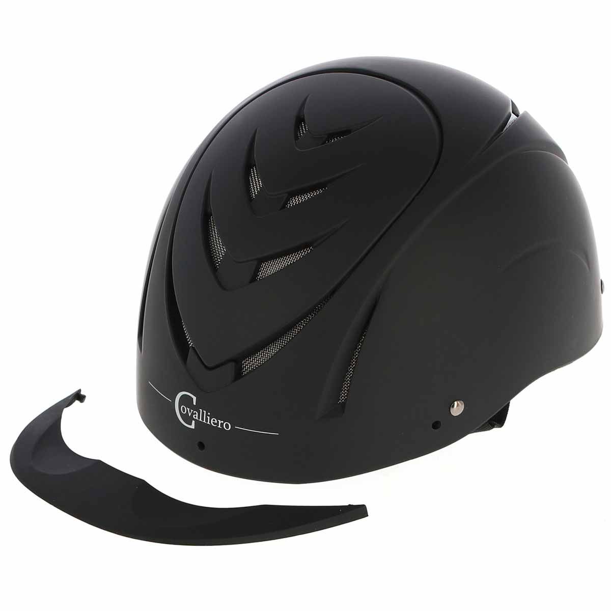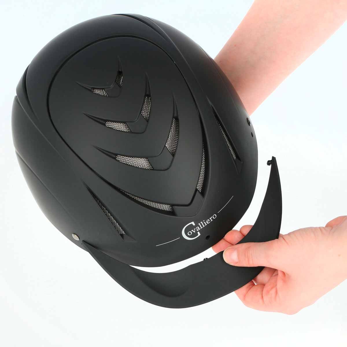 Ridhjälmen med aerodynamisk profil kan justeras i höjdled med huvudringen som sitter på baksidan av huvudet. Dessutom kan ridhjälmen från Covalliero kontinuerligt anpassas till huvudets omkrets med hjälp av skivhjulssystemet. Hjälmsköldenflexible kan enkelt tas bort, vilket gör hjälmen till en militär ridhjälm med det matchande satinskyddet. Det extra hårda hjälmskalet samt 4-punktsbeslag med högkvalitativa fästelement gör den här hjälmen till en ridhjälm med ett oslagbart pris-prestandaförhållande. NERRONs innerfoder kan avlägsnas för rengöring.