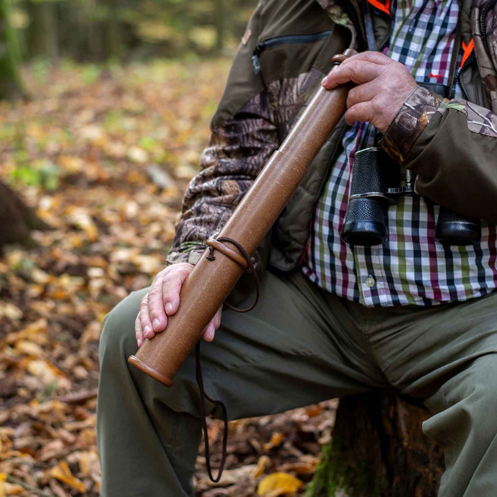 Weisskirchen Eifelhircof är mångsidig och kan imitera en mängd hjortljud; Det är också användbart att locka vildsvin. Dess teleskopiska design med tre sektioner gör att du kan uppnå ett djupare och mer varierat ljud. Stängt den mäter 21 cm, men den kan sträcka sig upp till 50 cm, vilket gör att de kan anpassa sig till olika jaktsituationer.