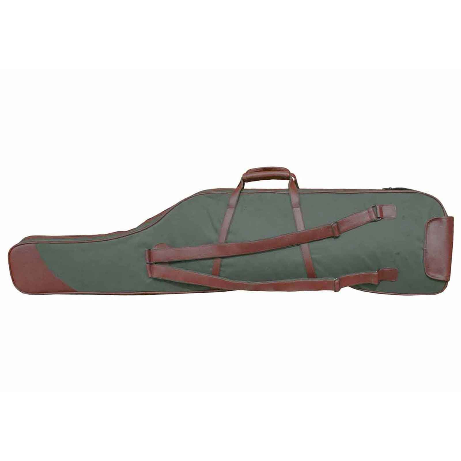 Detta extra rymlig matning gjord av oliv -gröna polyestertyg med syntetisk läderklippning erbjuder optimalt skydd och gott om utrymme. Det erbjuder utrymme för ett vapen med visir eller två vapen utan riflescopes. Med en längd på 125 cm passar den en mängd olika vapen.
