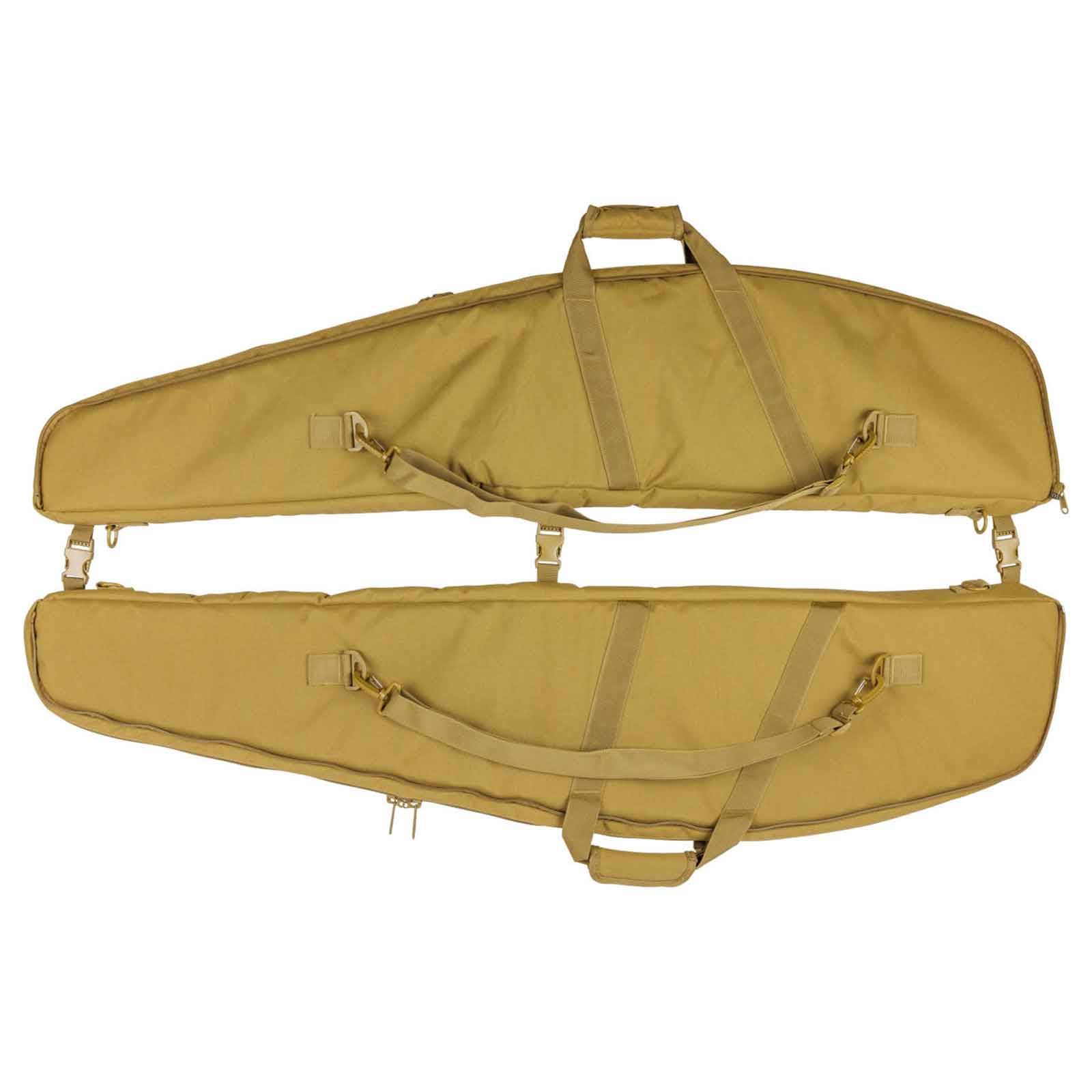 Maten kan ta upp två långa vapen. Men det kan också delas upp i två enskilda vapenväskor och sedan ta upp ett långt vapen.
