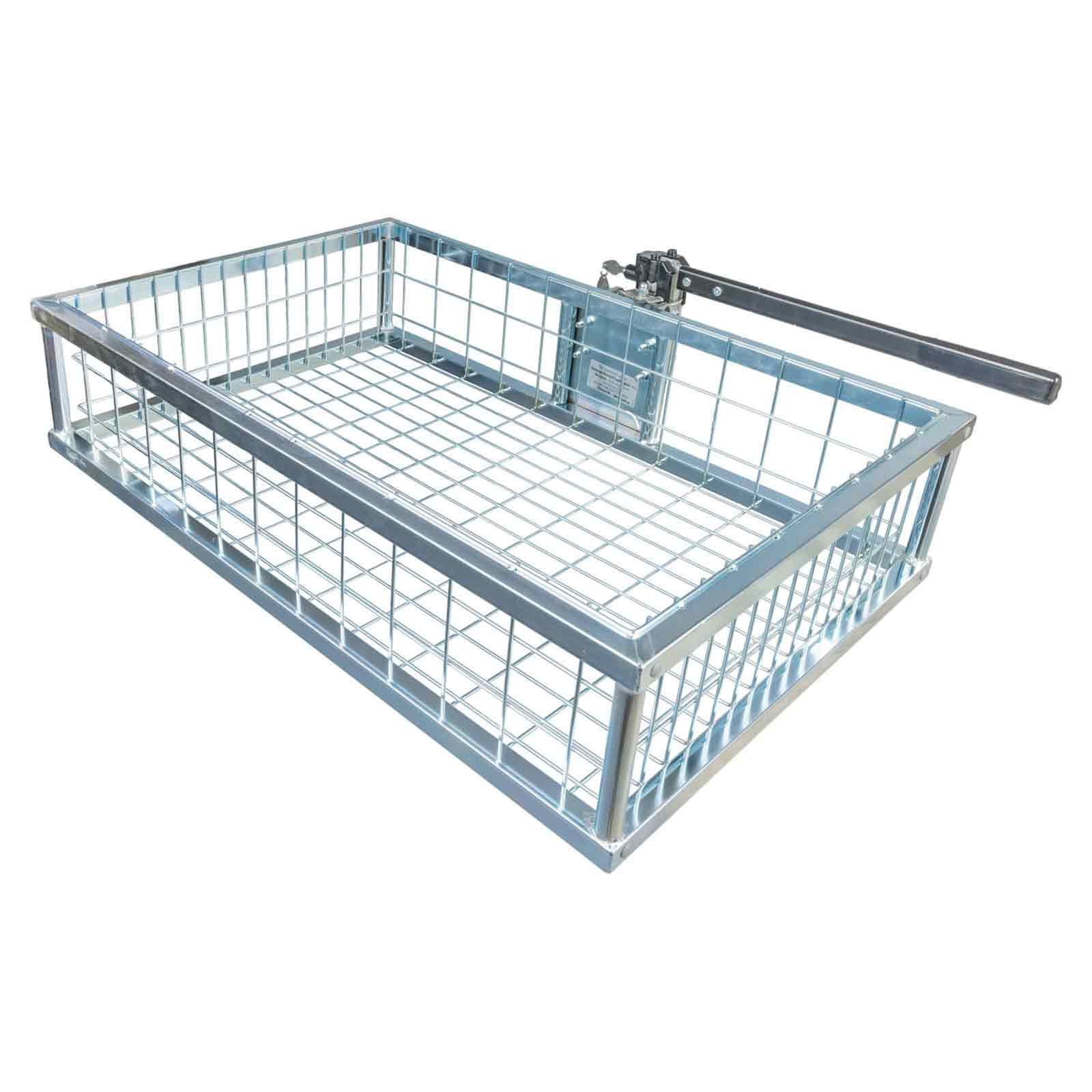 Den bakre bäraren galvaniserad, koppling vikbar 89x58,5x20 cm är ett oumbärligt verktyg för alla som behöver en praktisk och pålitlig transportlösning. Oavsett om det är dödat spel, bete eller andra föremål, erbjuder denna bakre bärare tillräckligt med utrymme och är lätt att montera på släpvagnskopplingen.