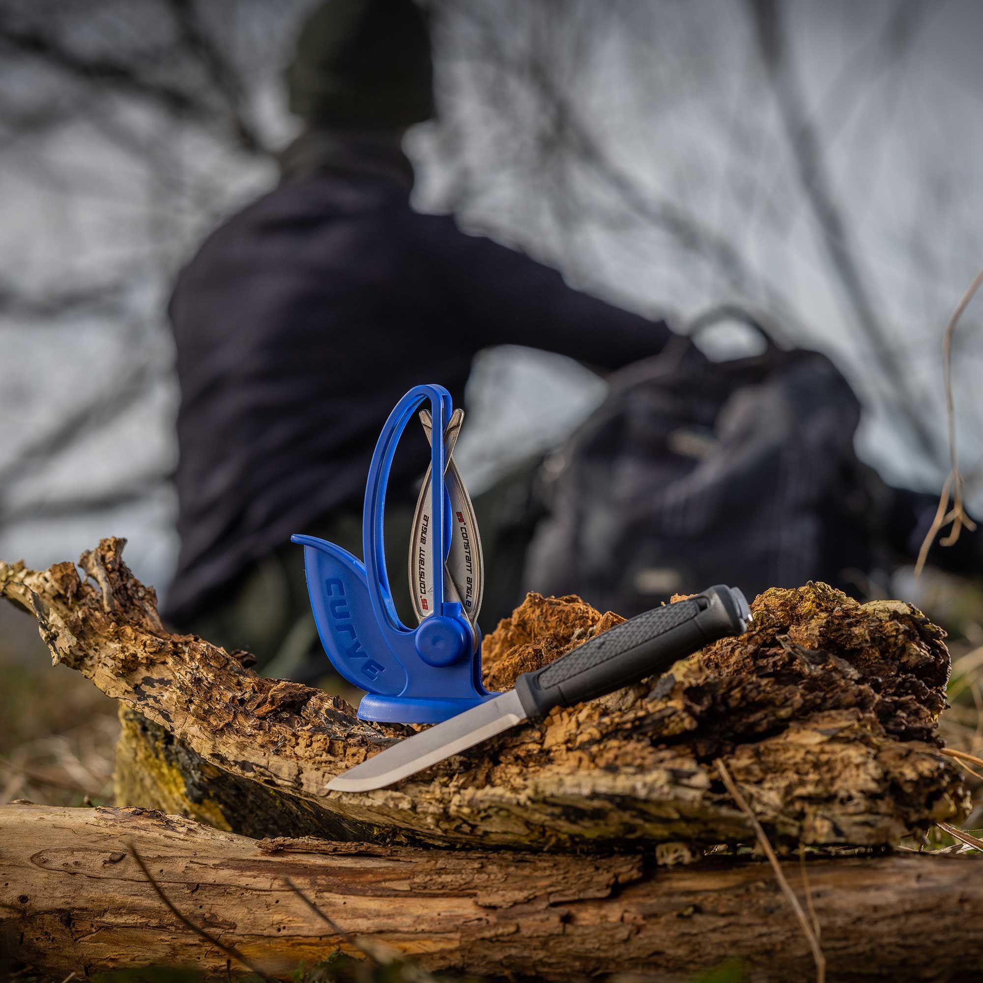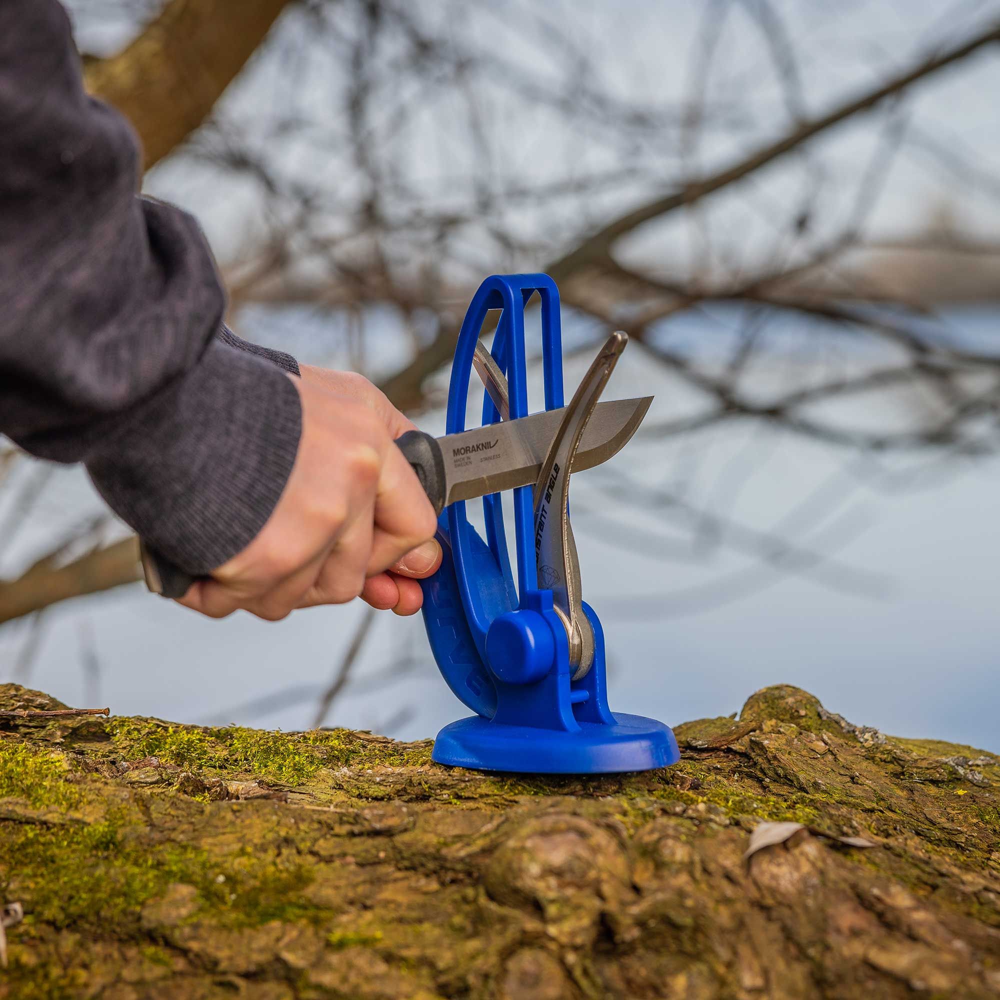 V-skarpen kurvknivslipare blå