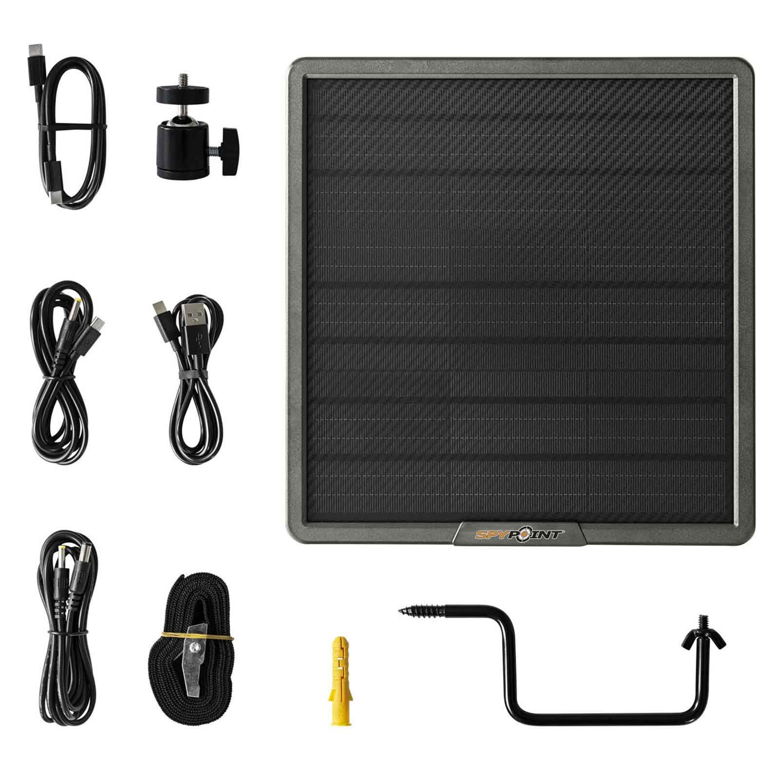 spypoint solpanel med litiumbatteri kombinerar en solmodul och ett litiumbatteri i sin kompakta design. Denna kombination uppfyller funktionen att vara en kontinuerlig energikälla för din kamera, särskilt i avlägsna områden som du sällan kan besöka.