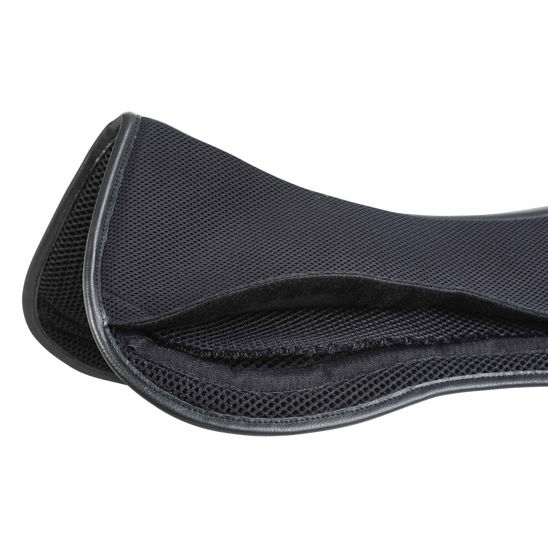 - Unik, tvålagers korrigeringsdyna för dressyrsadlar tillverkad av mycket funktionellt, innovativt 3D AIR® EFFECT mesh-material med individuellt fyllbara vadderade fickor av meshmaterial i området för sadelkuddarna