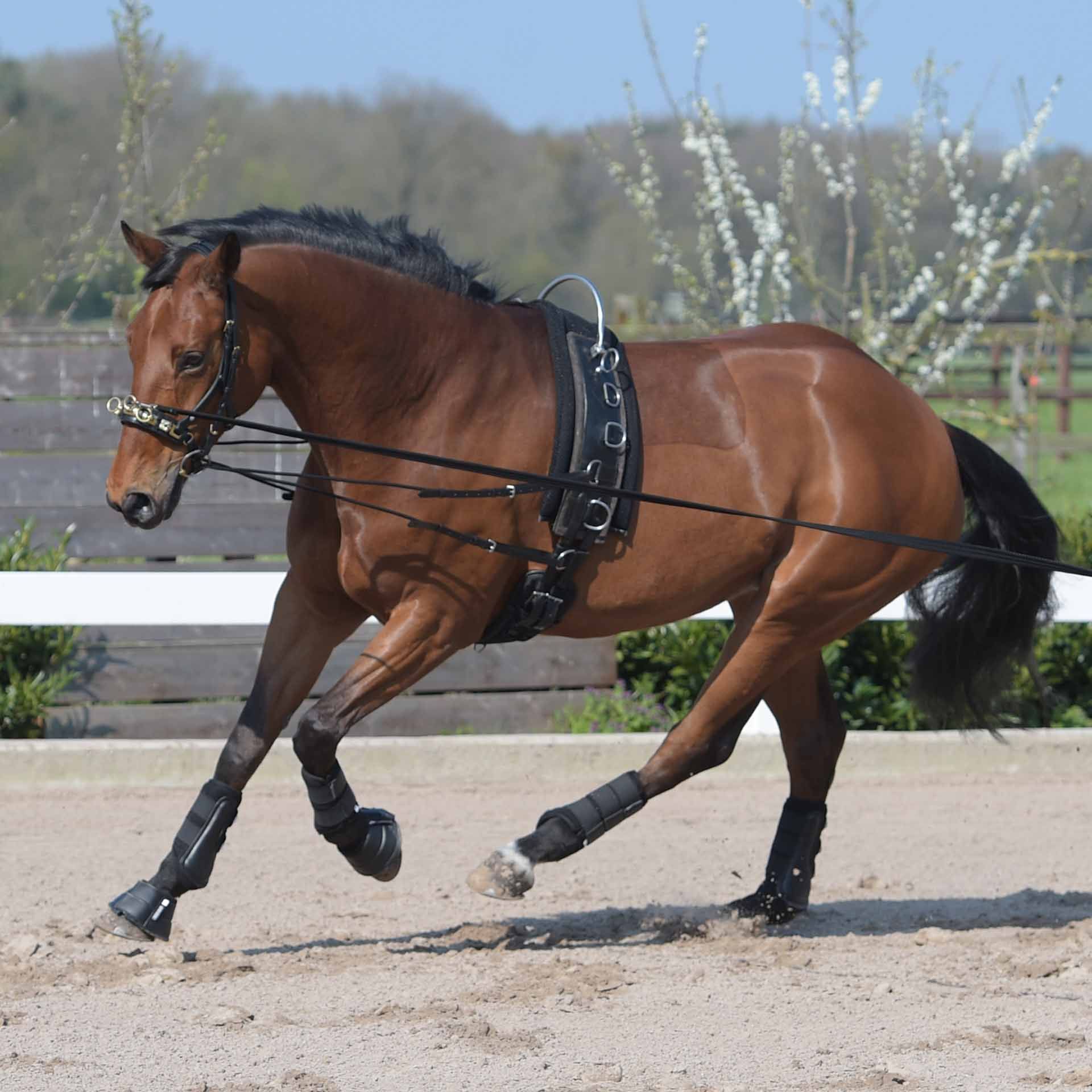 Beroende på hästens ålder och utbildnings-/träningsnivå är bröstet och axlarna betydligt smalare än hästens yta på grund av utvecklingen av kustbågen bakom den. Som ett resultat kan detta göra att ett konventionellt utfallsband glider/tippar när det är obundet vid utfall så snart hästen sätter en viss spänning framåt på bandet.