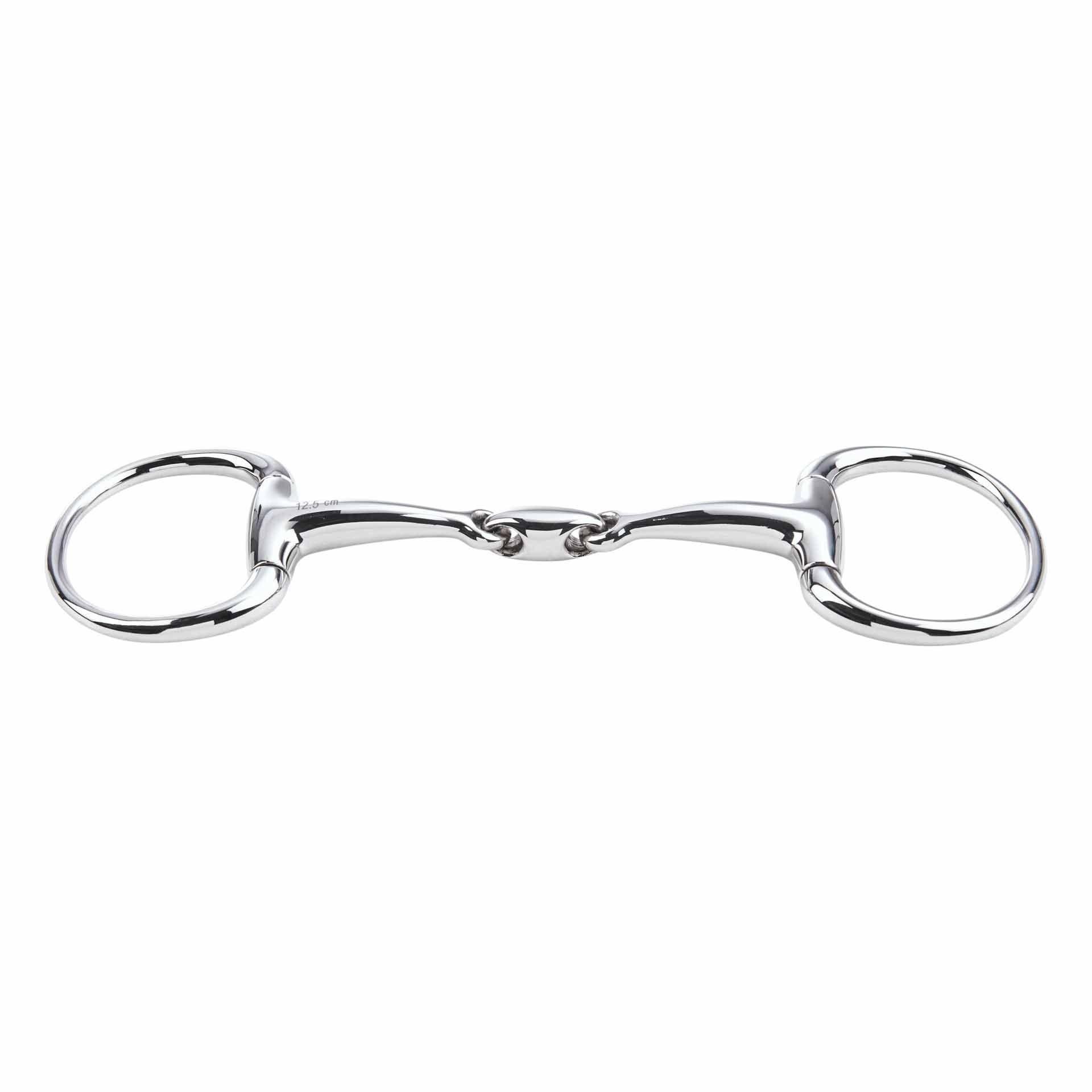 biten kännetecknas av dess speciella egenskaper och fördelar. Både munstycket och ringarna är gjorda av rostfritt stål av hög kvalitet, vilket bidrar till dess hållbarhet och robusthet. Den noggranna samordningen av alla anslutande medlemmar och ellipen -formade mittpunkten på respektive bitstorlek och styrka säkerställer en optimal passform och därmed en hög komfortnivå för hästen.