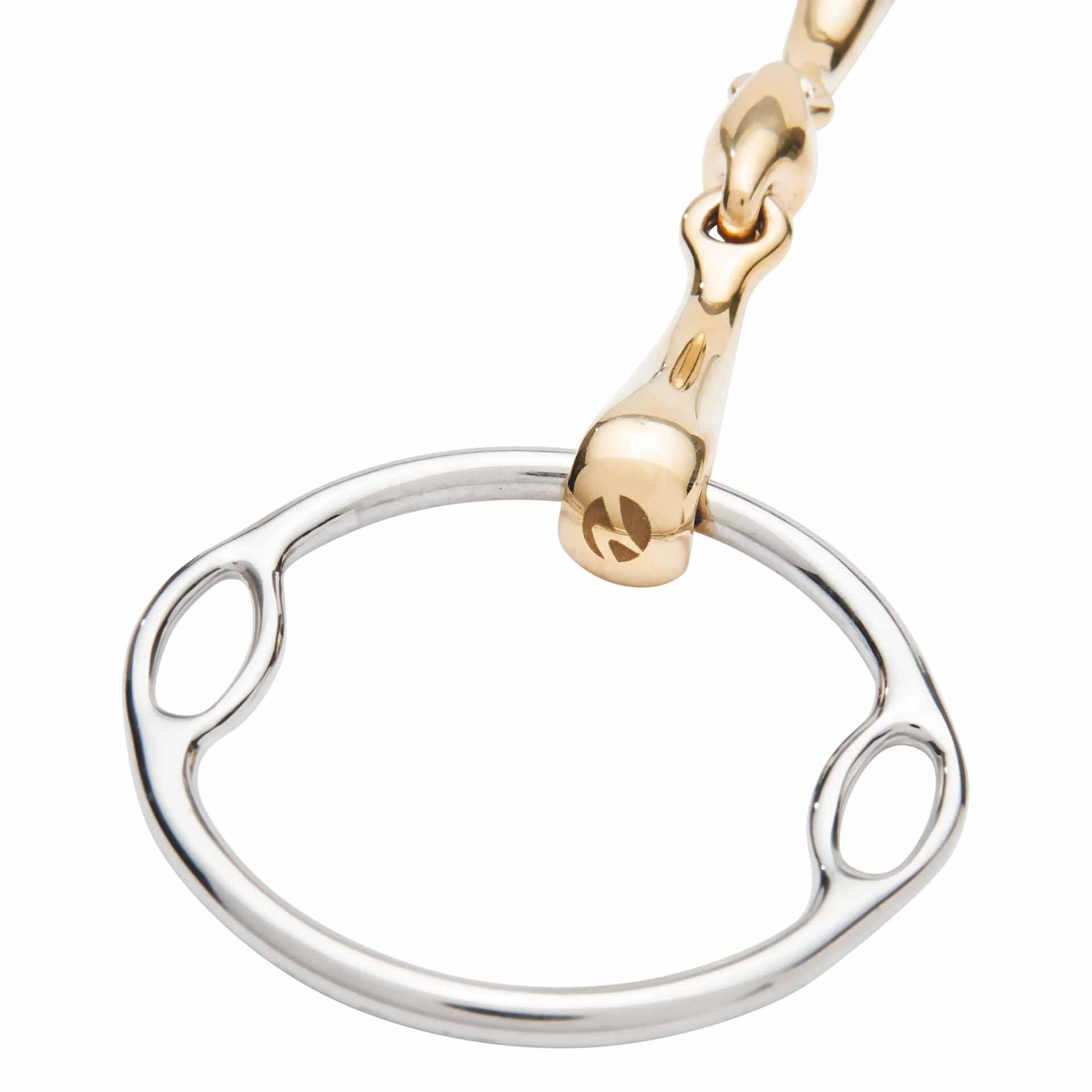 Munnstycket på biten består av materialet med hög kvalitet Kaugan ® UP>, vilket främjar förbättrad acceptans och fördjupning i hästen och därmed ökar komforten avsevärt. Dessutom är alla anslutande medlemmar perfekt matchade med respektive bitstorlek och styrka, vilket säkerställer optimal passform och stabilitet. Ringarna gjorda av robust rostfritt stål garanti hållbarhet och hållbarhet.
