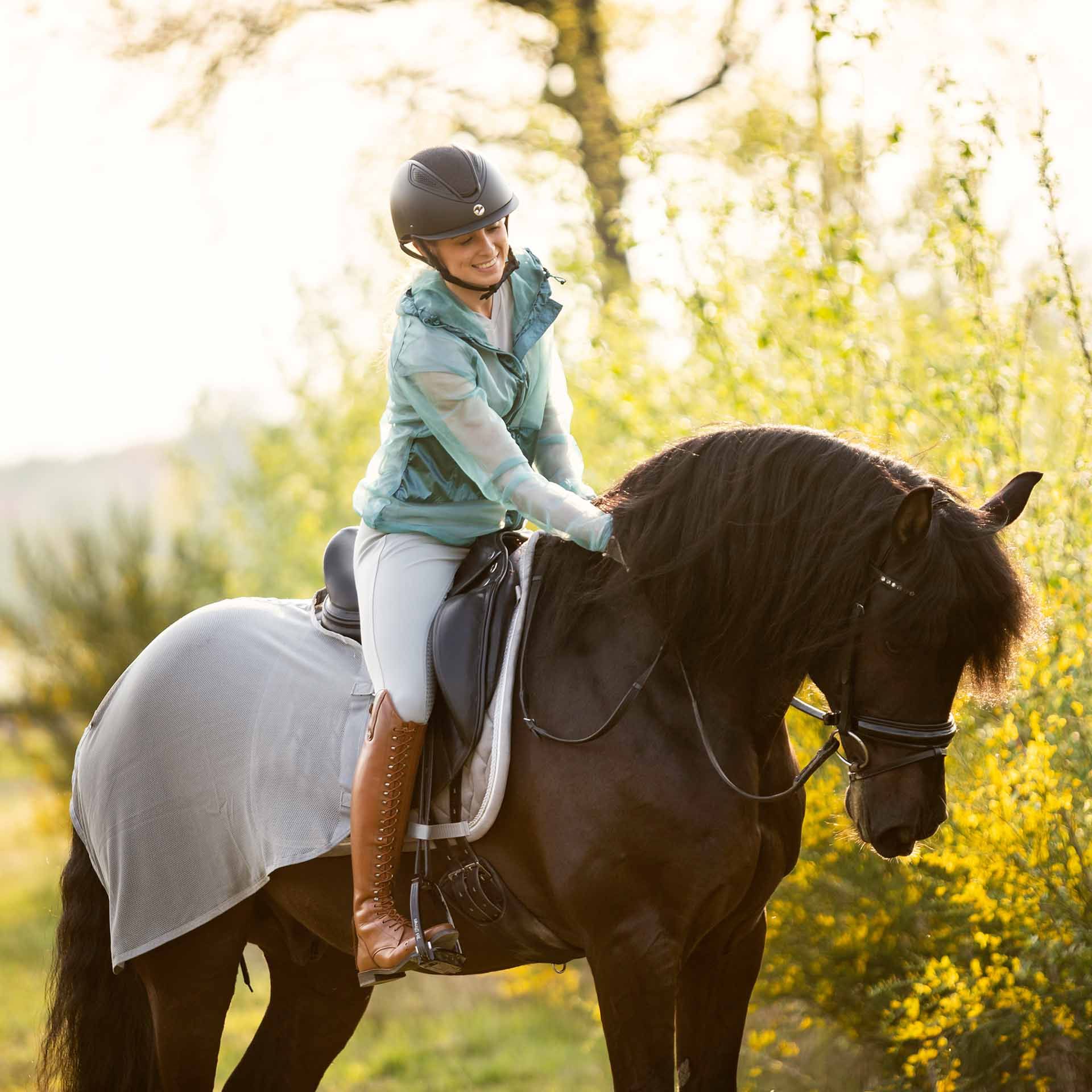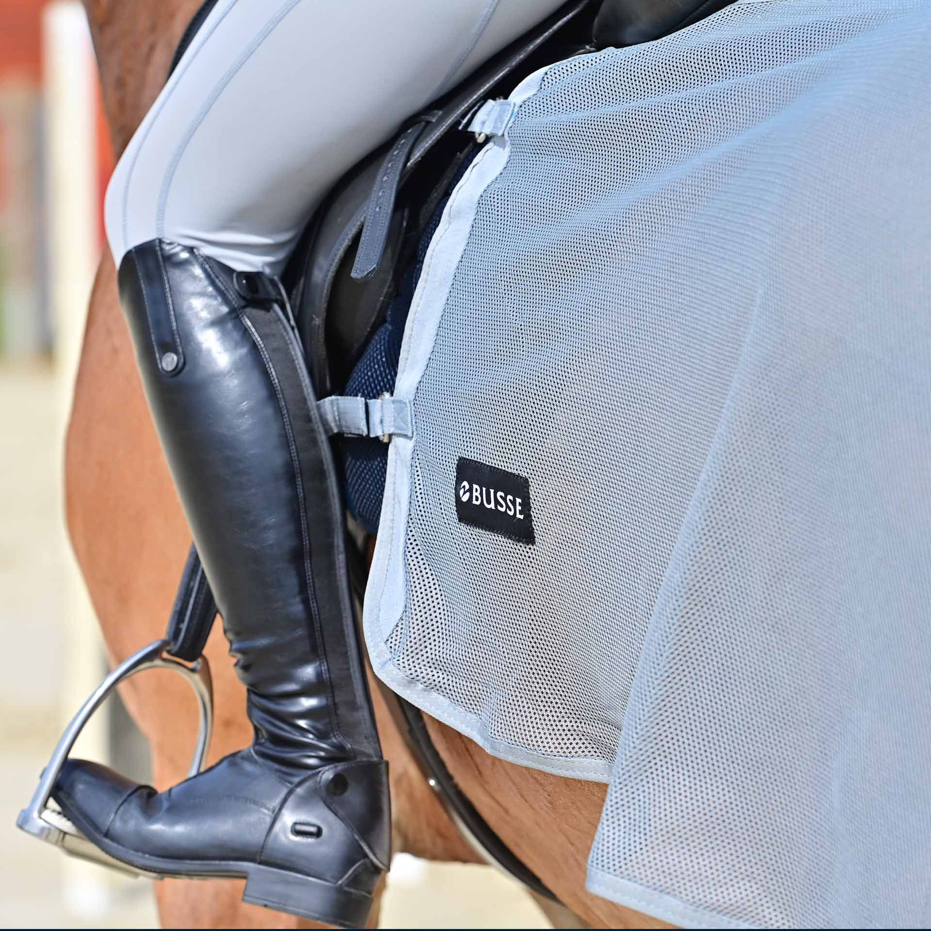 Busse -träningstaket är särskilt lämpligt för ryttare och hästar som ofta störs av insekter under träningen. Det erbjuder skydd och komfort och kan säkert fixas i högre gångar eller vid hoppning.