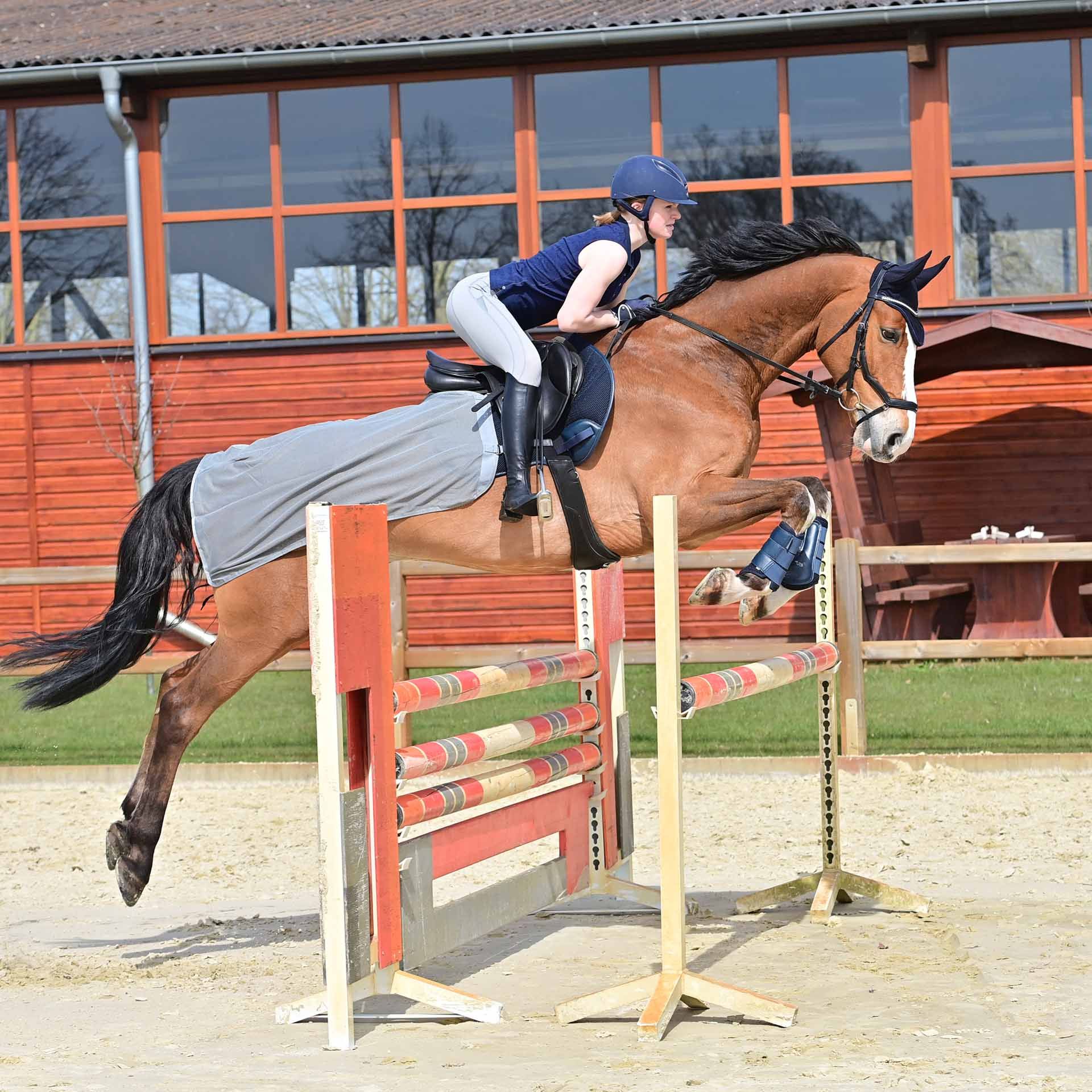 Busse Training Cover Fly erbjuder många fördelar. Det är idealiskt skydd mot insekter under träning och hjälper till att upprätthålla koncentrationen. På grund av den enkla fixeringen och det hårda slitande polyesternätverket är det mycket praktiskt och hållbart. Din speciella passform och färg -koordinerad bombning säkerställer också en snygg look.