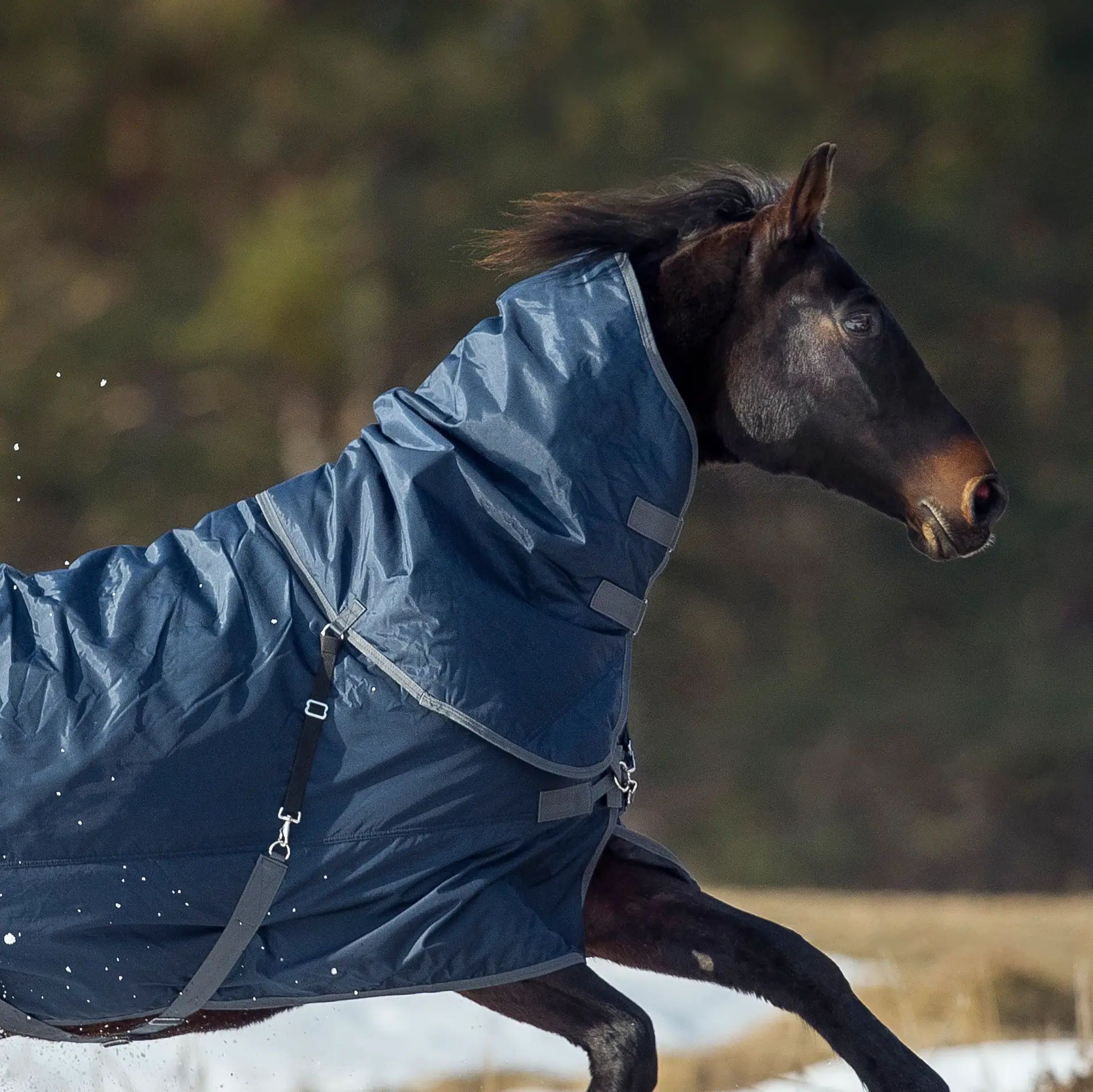 Tack vare sitt extremt hållbara och funktionella yttre material från 840 The Nylon , erbjuder den flexibla per 100 nackdelen maximal hållbarhet och hållbarhet. En lätt värmeisolering av 100 g polyfill bidrar till hästens välbefinnande och säkerställer termisk komfort. Drysense-fodret, en särskilt pälsvänlig och snabbtorkande polyestervävnad, säkerställer en mjuk torr känsla även med hög luftfuktighet och förhindrar nackdelen från klumpig. Med en andningsförmåga på 3000 g/m²/24H och en vattentäthet på 5000 mm är nackdelen också vindtät och väderproof.