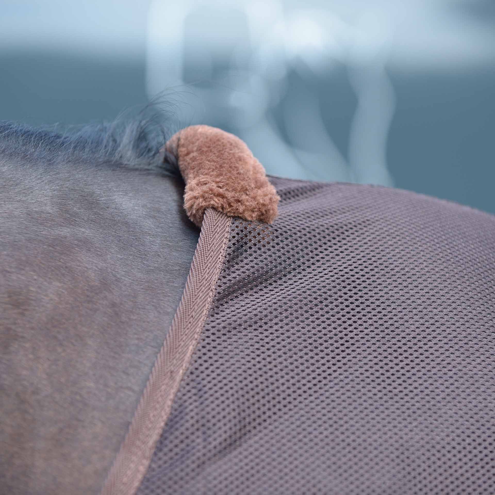 Transport Flichen Corner Professional II erbjuder en optimal passform genom bakre agentsömmen. En mjuk withers -kudde ökar komforten för hästen. Taket har en enkel T-stängning i bröstområdet och en längdjusterbar tvärceremoni med en T-stängning, som kan tas bort från ett praktiskt och innovativt klättringssystem. Utrustningen avrundar en djup bakre -handsladd.