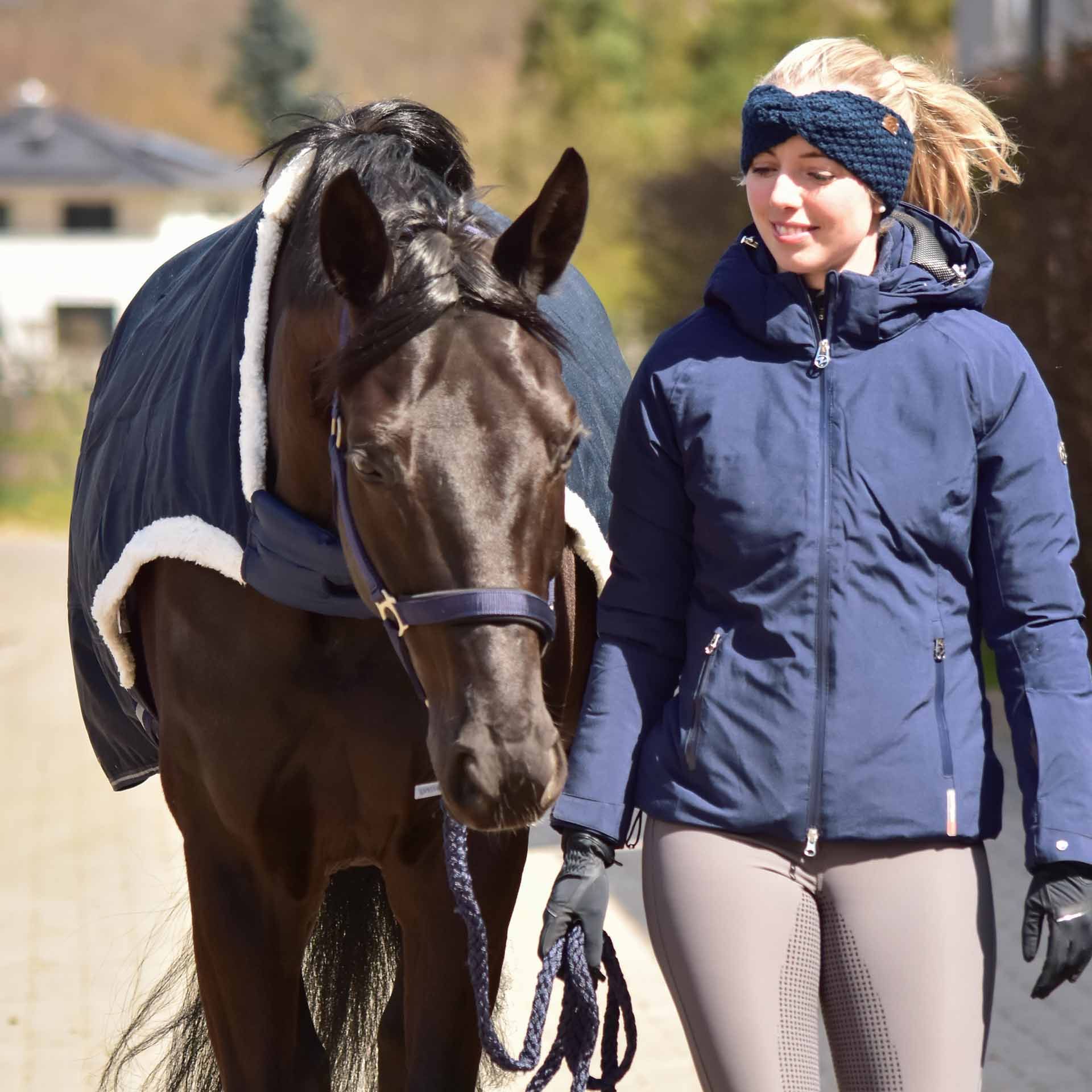 Busse Leading Tak Walking 100 är ett väderbeständigt specialtak med lätt värmeisolering, idealisk för stegarbete i styrsystemet eller på löpbandet . Den består av en hållbar 600 polyester ripstop och har en pälsvänlig satinring för att inte försämra hästens rörelse.