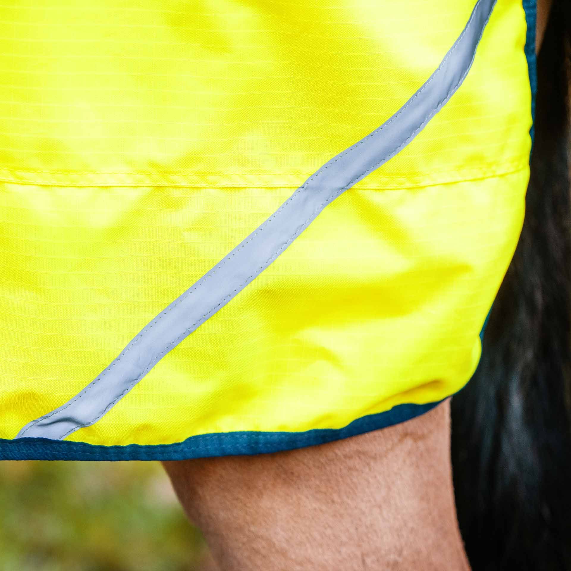 Taket består av ett hållbart 600 Polyester ripstop yttre material, som är vindtät, vattentät och andningsbart. 100 g polyfillfyllningen säkerställer lätt värmeisolering. Den rörliga, pälsvänliga satinlingen påverkar inte hästens rörelse och erbjuder ytterligare komfort.