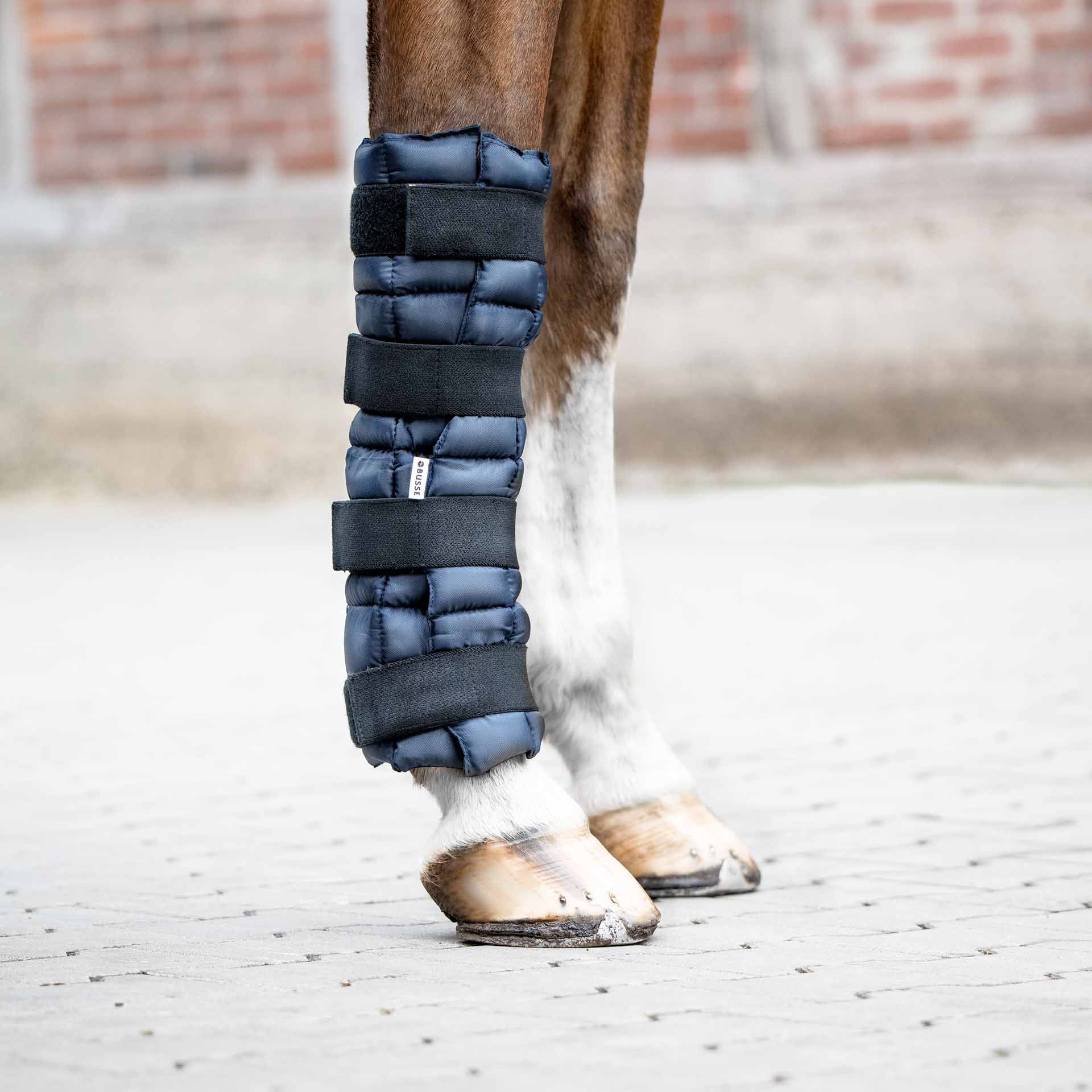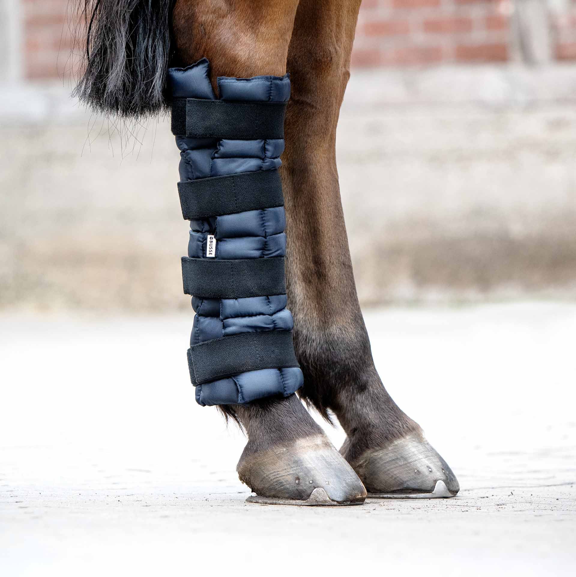 Konstruktion damasken har 24 individuella, stadigt integrerade kylpaket, som behåller sin flexibla konsistens vid kylning, så att damasken kan anpassas optimalt efter benet och säkerställa bra yta kontakt den tillhörande kyleffekten säkerställs Coola förpackningar är extra vadderade och isolerade på utsidan för bra, långvarigt temperaturhållning Fyra elastiska kardborrdräkter för enkel och säker på- och avtagning Yttermaterial tillverkat av slitstark 420 denier polyester individuellt i en transport väska Mått: ca 47 x 42 cm Applicering Förkyla damasken helt i isfacket; Som regel uppnås en invändig temperatur på -6°C. Sätt på damasken som vanligt benskydd så att den inte kan glida eller trycka på upprepas vid behov endast under appliceringen av kylning på benet, lämna inte hästen utan tillsyn tillsammans med två vanliga hushållsispåsar, damasken håller sin kyltemperatur i en vanlig kylväska i upp till 4 timmar med en temperaturhöjning. på endast ca 1-2°C per timme i bil eller lastbil eller i Med en ansluten, förkyld kylbox kan kyldamasken bibehålla sin kyltemperatur betydligt längre utan en temperaturhöjning med ytterligare två hushålls-, för- kylda ispåsar Fördelar okomplicerad och samtidigt effektiv användning, kan återanvändas vid kylning. Ingen ström eller vattenanslutning som krävs för damasken kan förvaras i isfacket för nödsituationer resurser: minskar vattenförbrukningen jämfört med vattenkylning med slang Detta kan också hjälpa till att lindra smärta om behovet inte är akut: ökad blodcirkulation, ökad ämnesomsättning i det kylda området, förbättrat avlägsnande av slaggprodukter, förbättrad cellregenerering anses vara särskilt effektiva och skonsamma, vanligtvis inga biverkningar. ingen doping