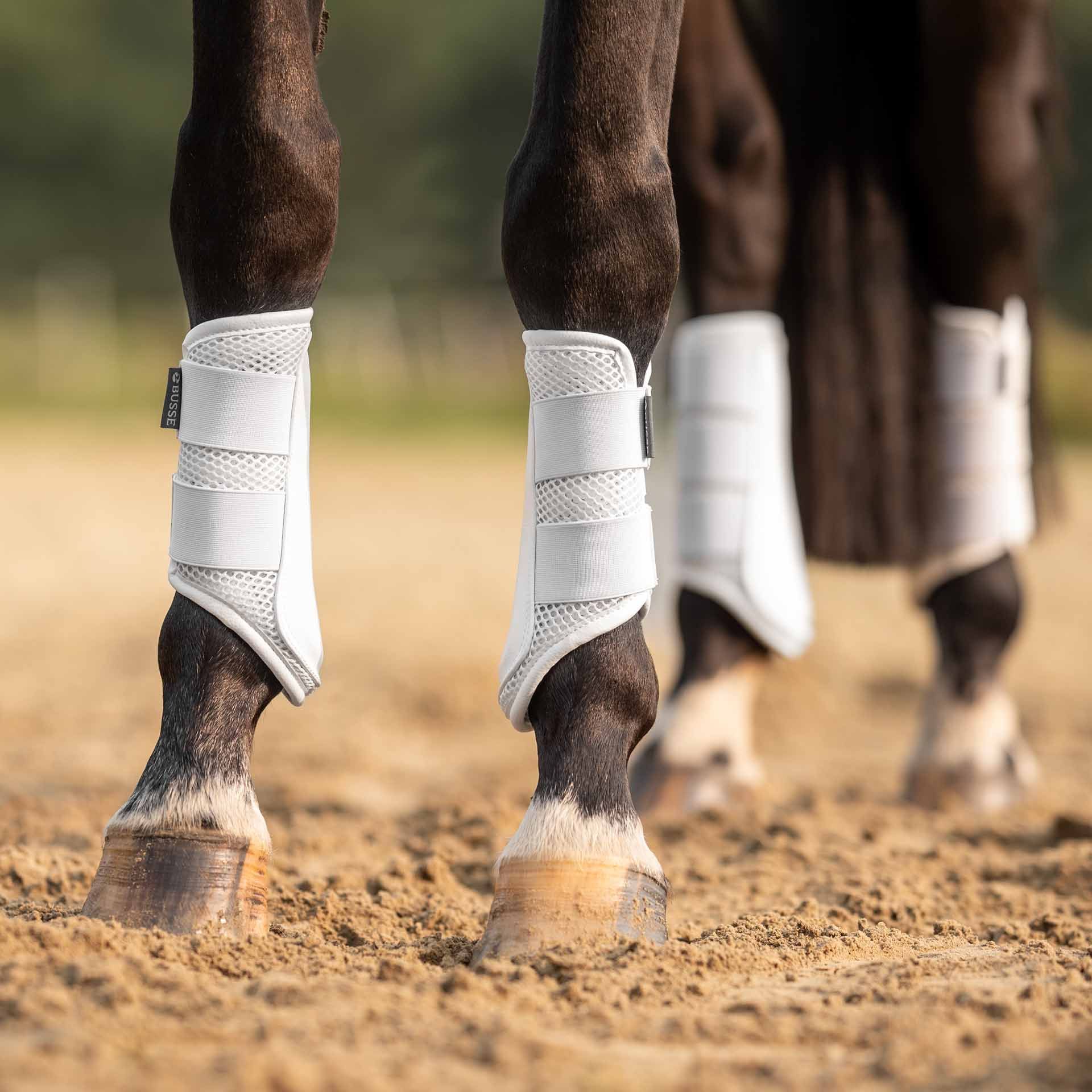 Tillverkade av tredimensionellt syntetiskt mesh-tyg, dessa gångar säkerställer optimalt slagskydd och utmärkta luftcirkulerande egenskaper. En feller -trierad vävnadsstöd garanterar maximal komfort och icke -glidpositionering för både skjuvade och obehagade hästar i varje väder och idealisk för att undvika överhettning.