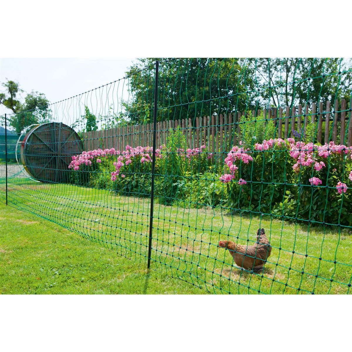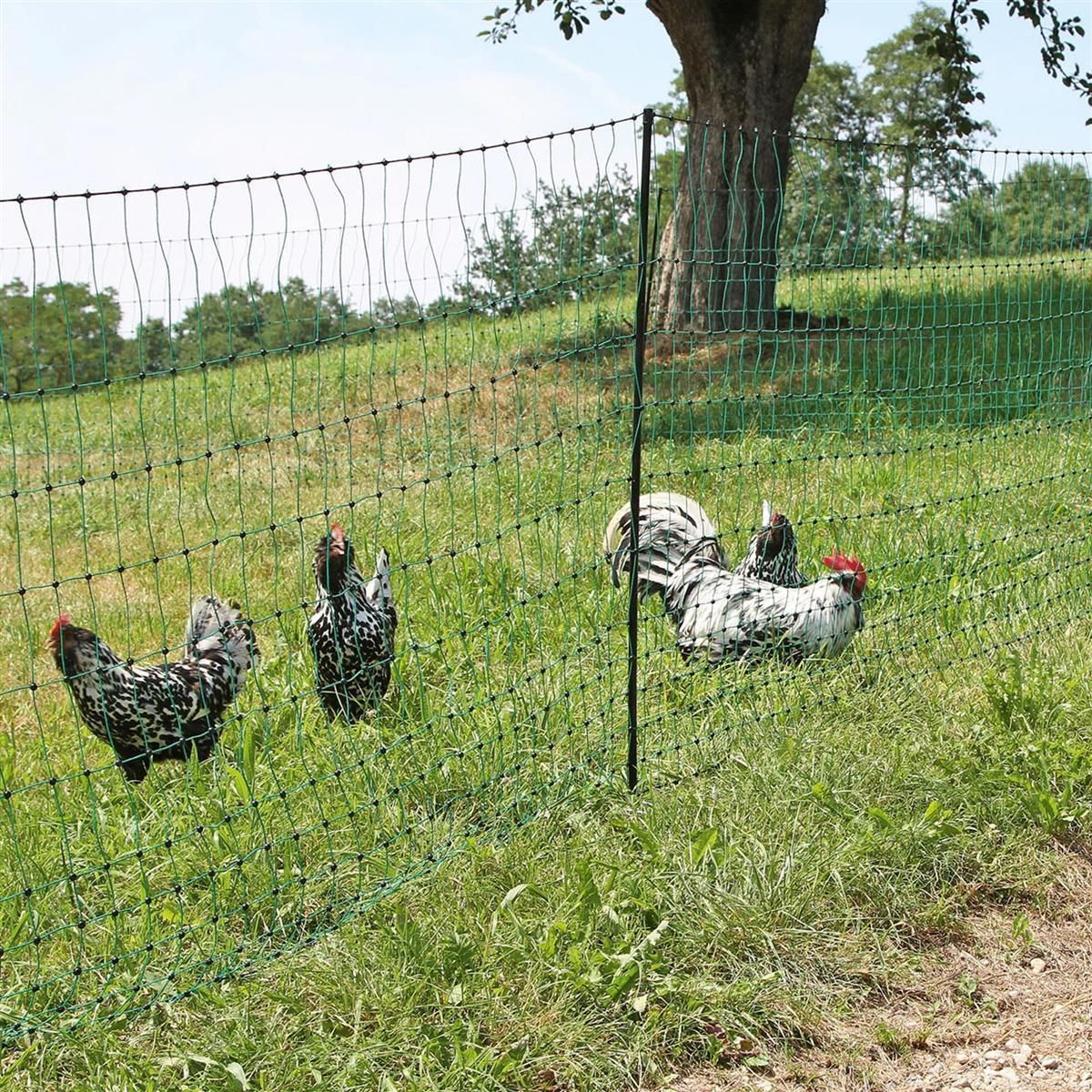 Icke-elektrifierbara nät (utan elektricitet) är ett enkelt sätt att stänga in. För optimal säkerhet (mot mård, hund, räv osv.) bör nätet vara elektrifierat. Detta förhindrar att djuret biter sig fast eller glider igenom. För detta behöver du en lämplig stängselanordning för fjäderfä som inte ingår i leveransen.