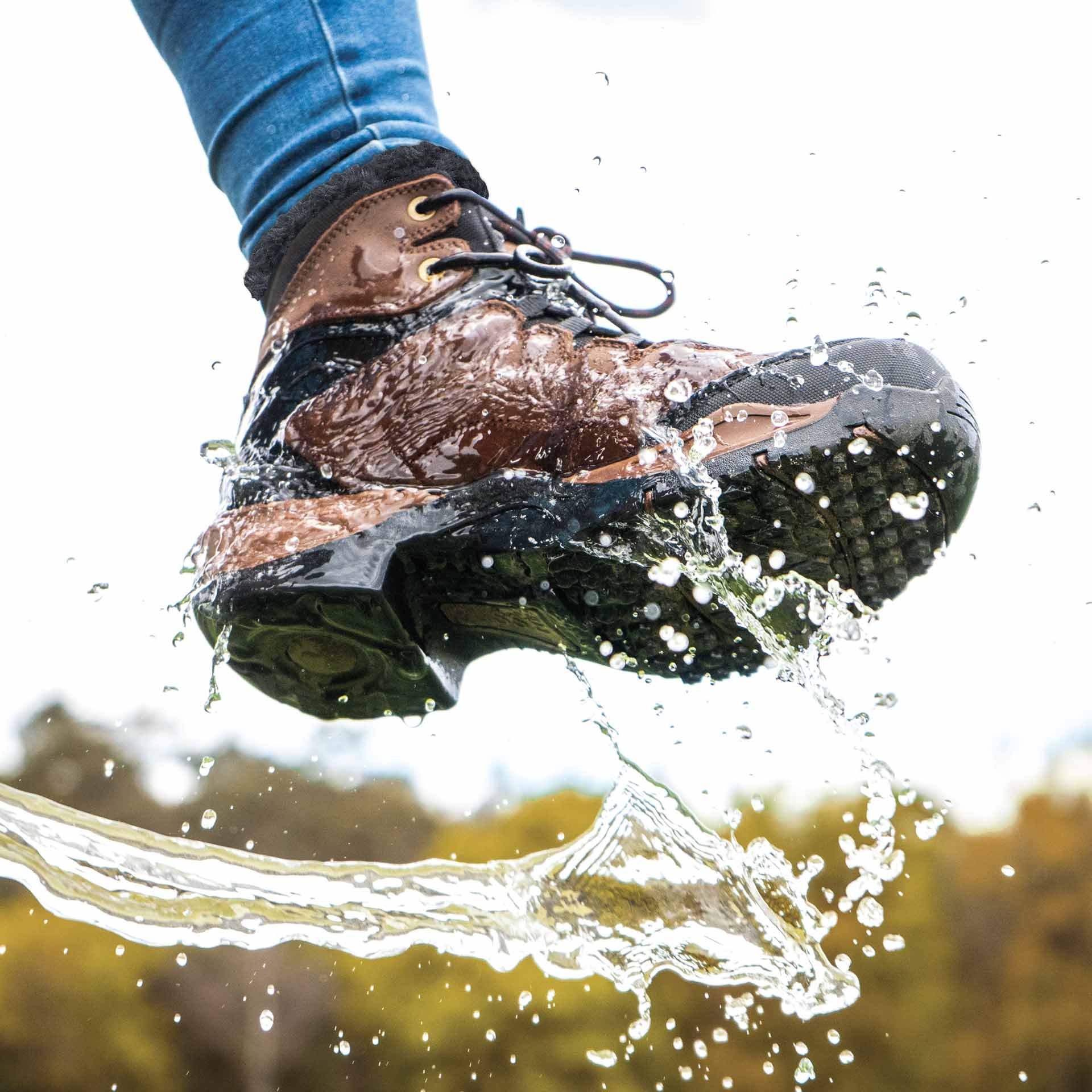 Bussarna som rider och stabila sko Dallas-vinter är en varm fodrad läderspetssko, som är Tillverkad av hållbart, fullt läder är. Den har en ankel -hög snörning, en högkvalitativ profilsula och en mysig syntetisk pälsmatning. Det är också vattentätt och andningsbart tack vare ett membran med hög kvalitet.