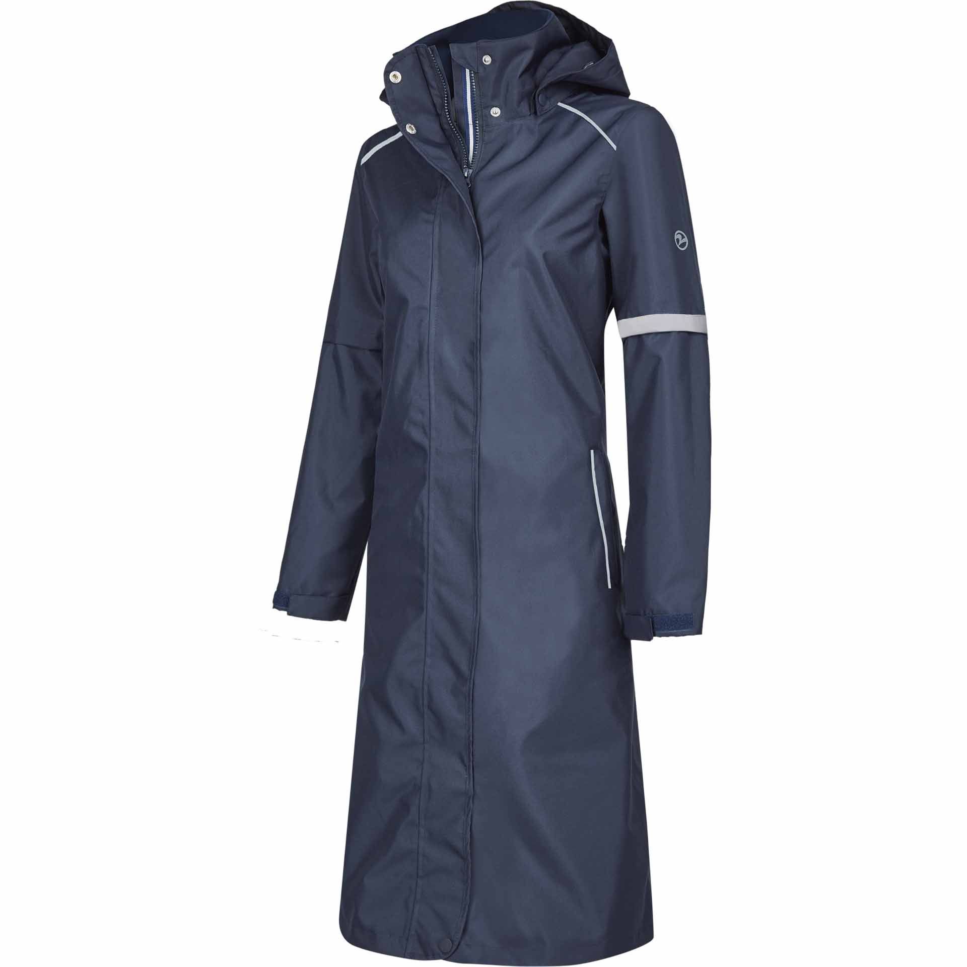 Bussarna Riding Coat Signy är en behaglig lätt ridande regnrock som består av vattentät och andningsbar vävnad och har helt svetsade sömmar . Specialfunktioner är 2-vägs YKK® huvudströmstängning med hakskydd och sadelskydd och det långa ris-regnskyddet.
