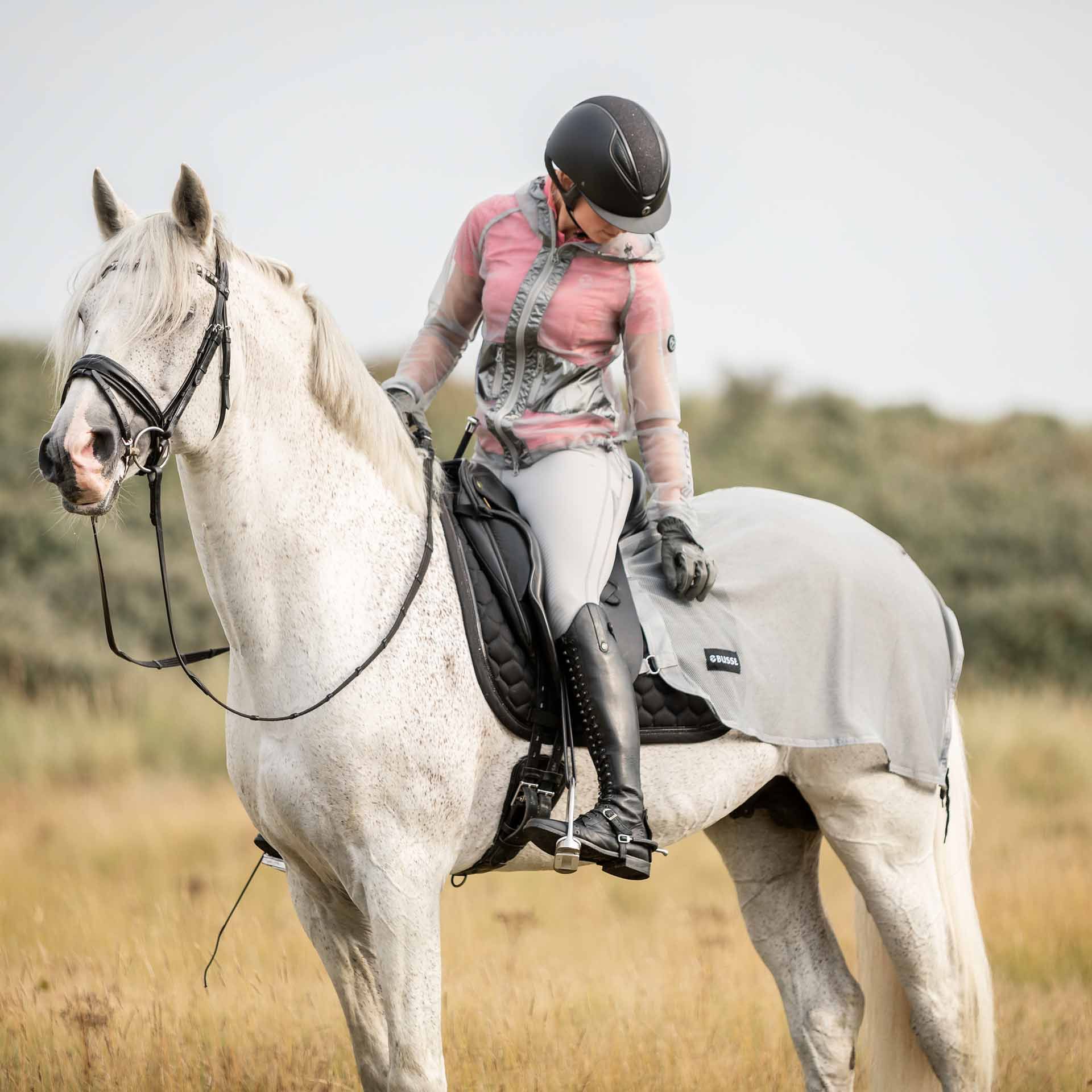 Busse Jacket Fly är det perfekta valet för ryttare som letar efter en effektiv och bekväm lösning för insektsförsvar under utomhusaktiviteter.