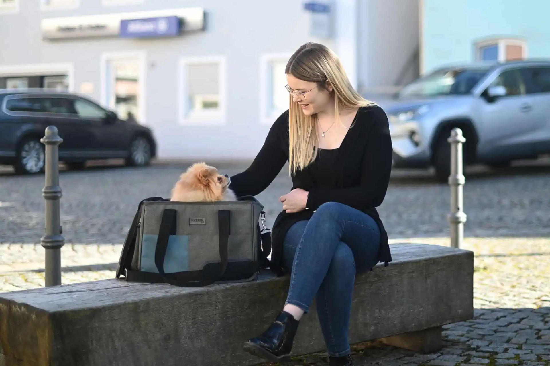 hundbärare väska semester 40x20x27cm, grå/blå - sportig komfort för ditt husdjur på väg