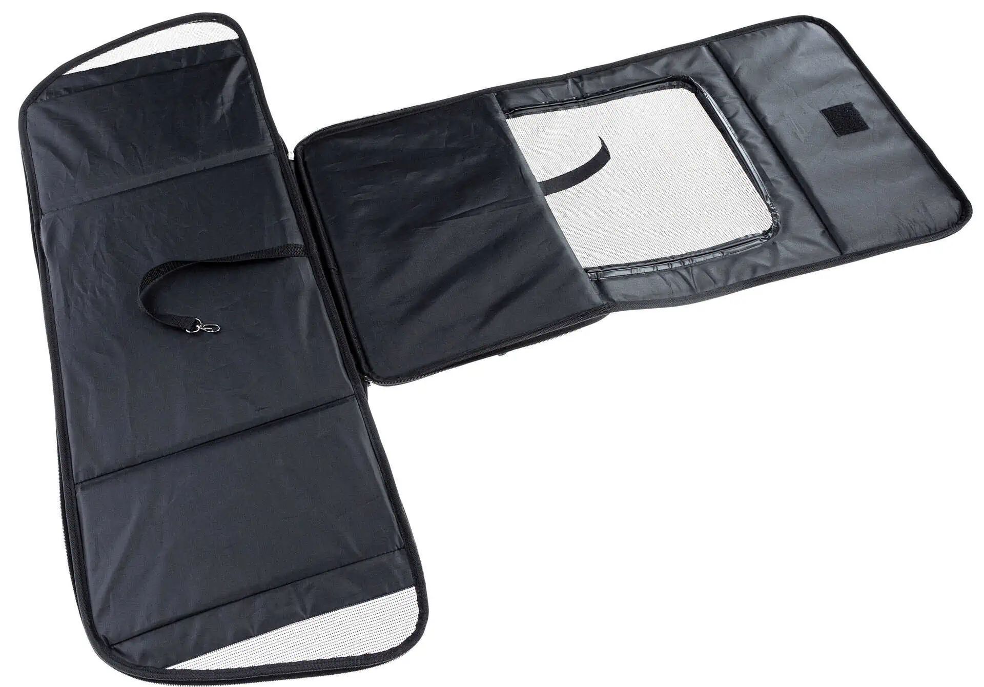 Med olika väskor och fack erbjuder bilstolväskan ytterligare förvaringsutrymme för godis, leksaker och andra nödvändigheter. En kontinuerligt justerbar slitage och axelrem gör transporten enkelt utanför bilen. Väskan är perfekt för semester eftersom den fungerar som en transport och bärväska, korg och sovplats. Om den inte används kan den demonteras och spara platt i en levererad väska.