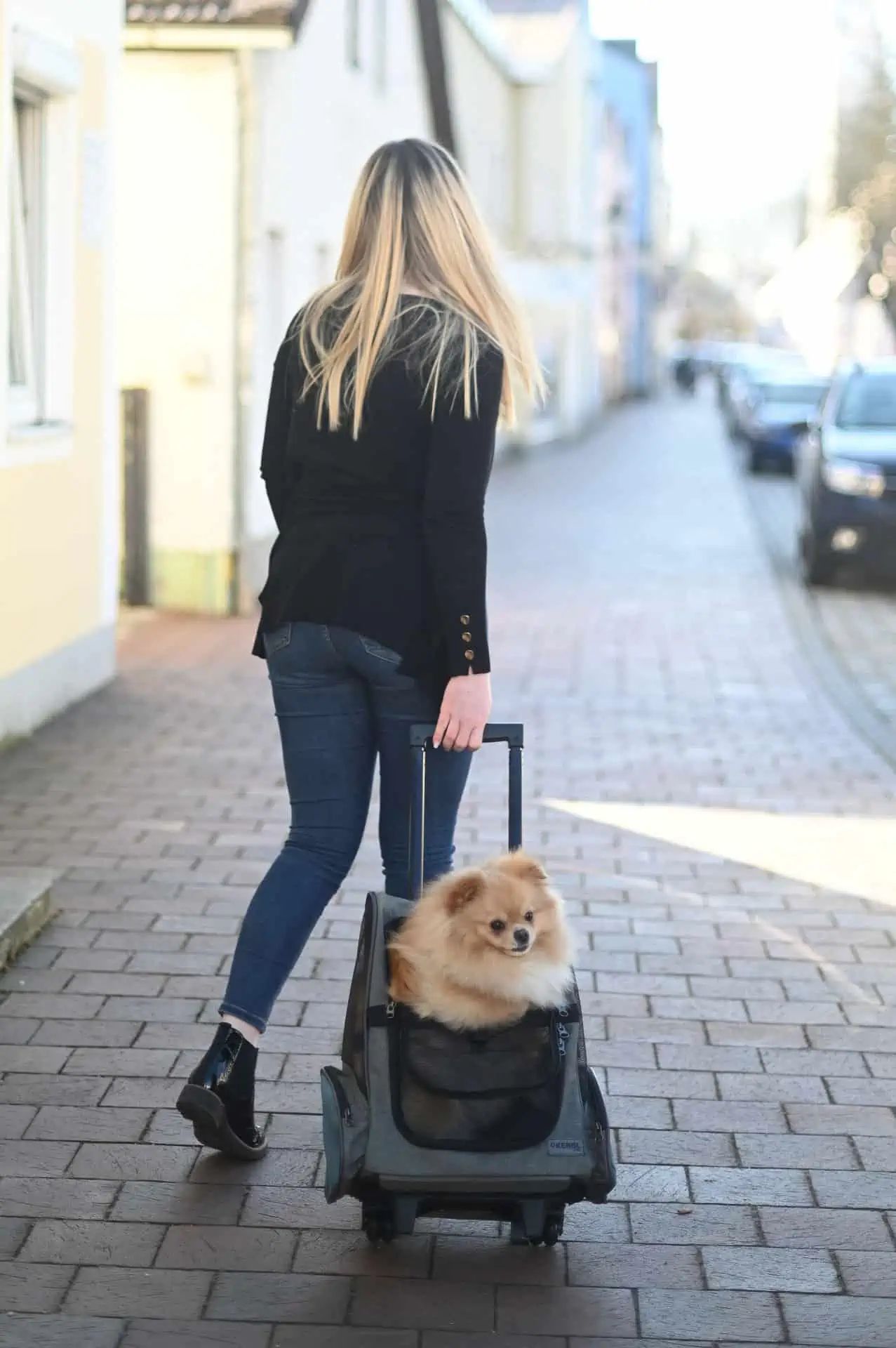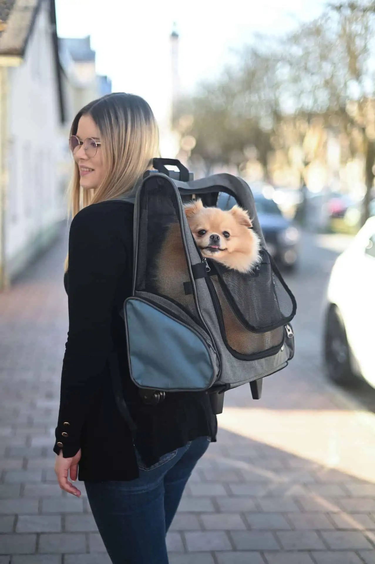 hundvagnars semester är en sportig vagn som möjliggör transport av små hundar eller katter enkelt och enkelt. Det kan också användas som ryggsäck och bilstol, vilket gör det till en mångsidig transportlösning för ditt husdjur. Med en justerbar teleskopisk arm, två rullar och två ständiga fötter är vagnen lätt att manövrera och stabil.
