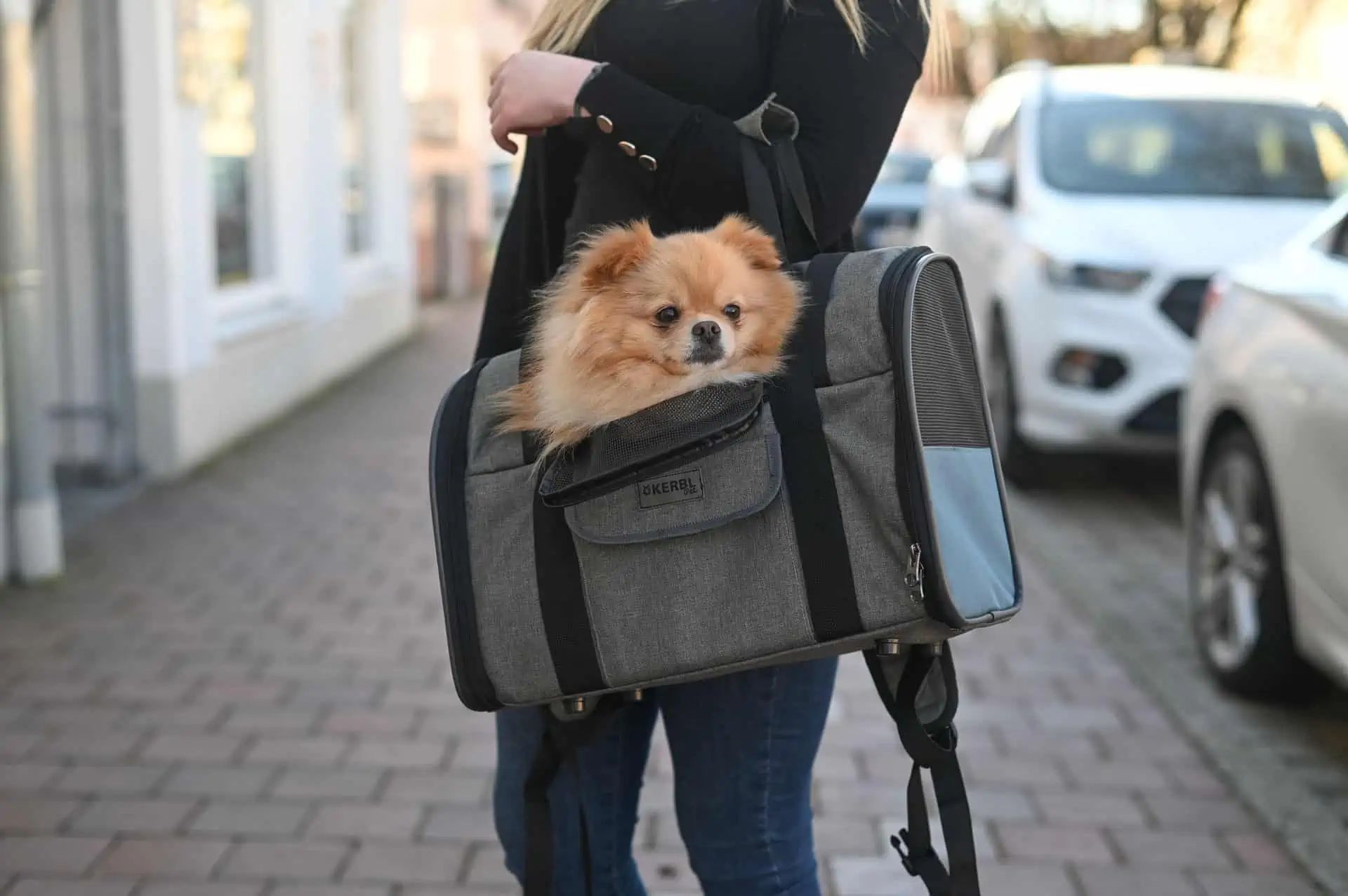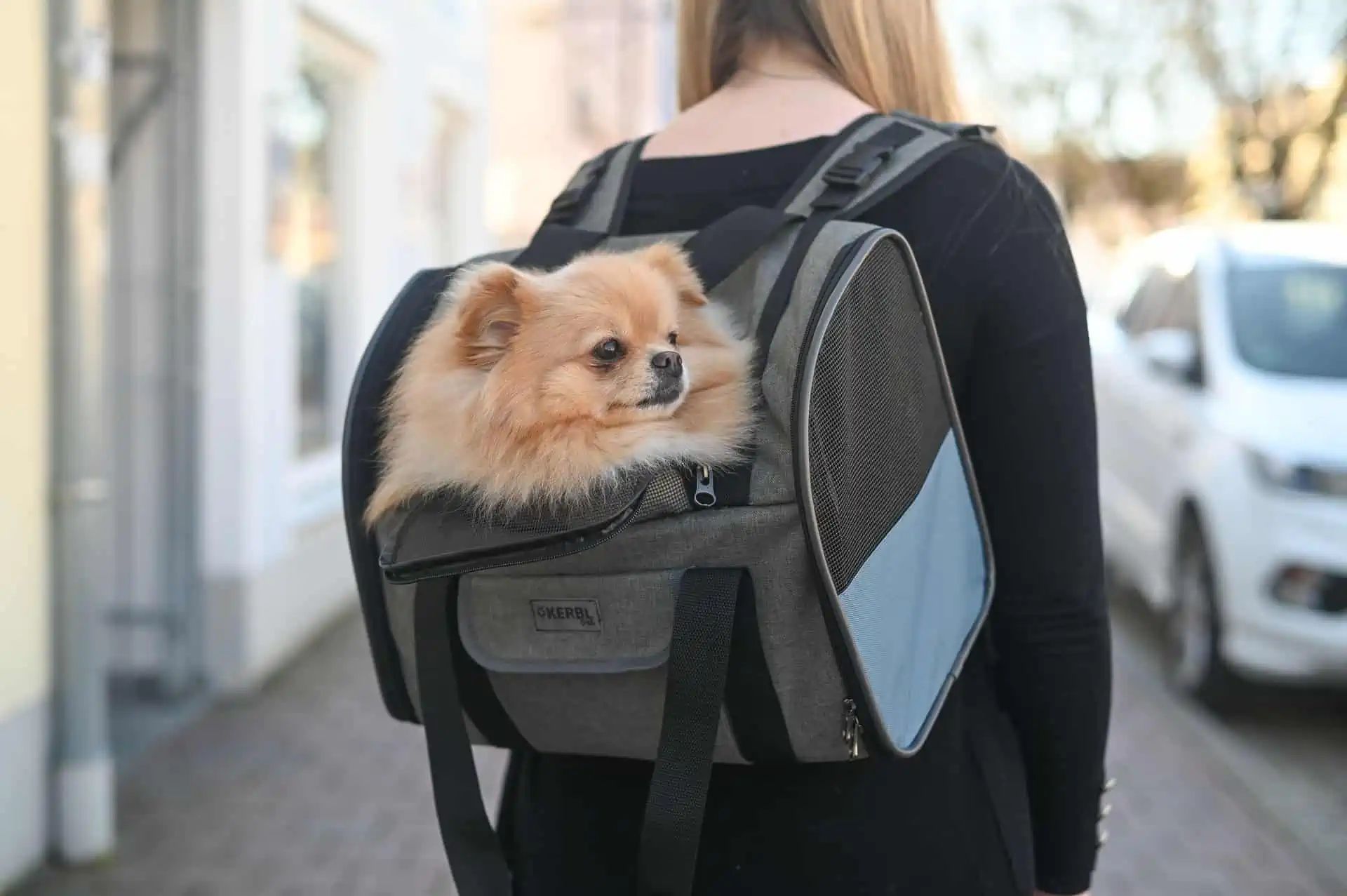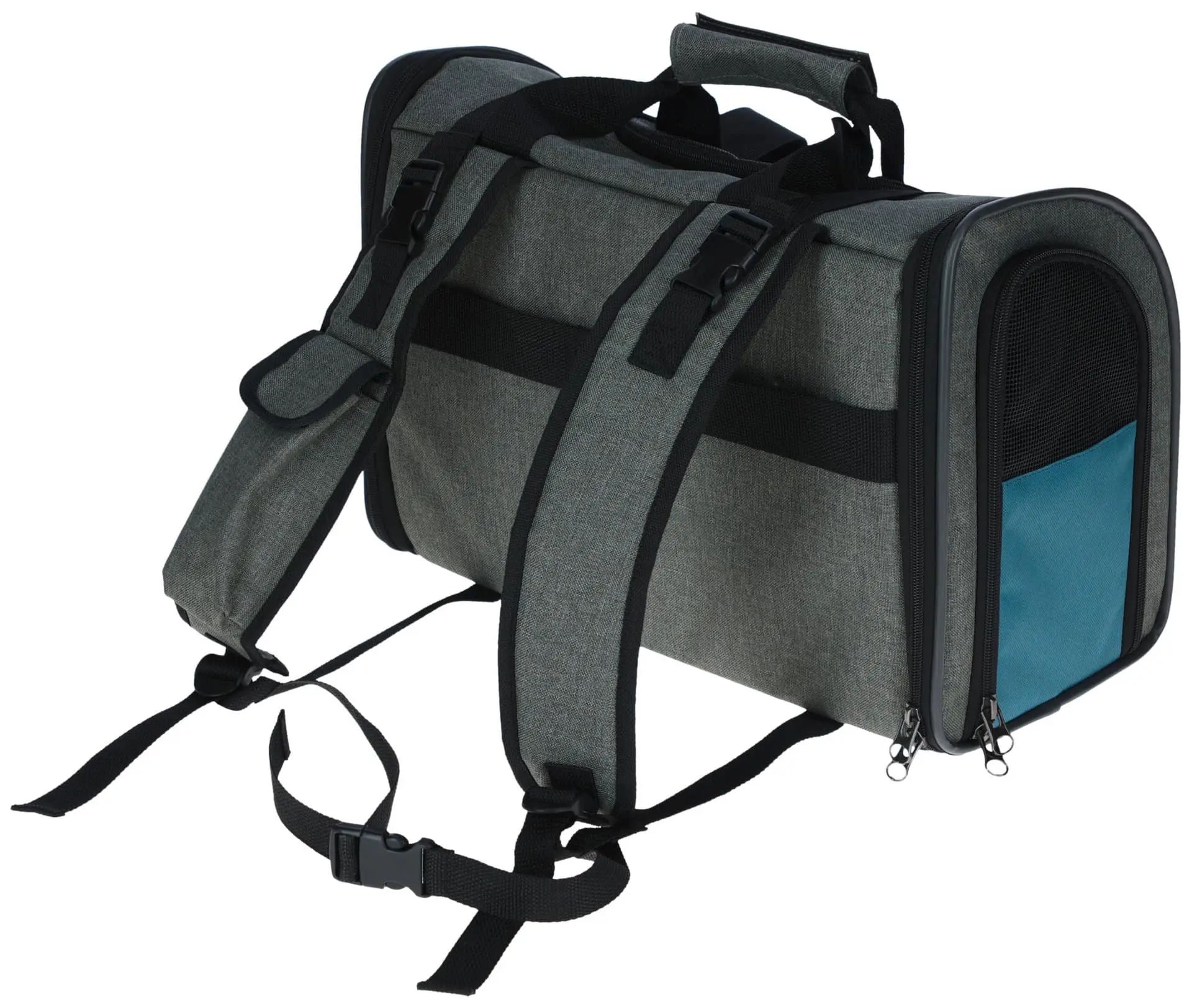 Hundred backpack semester 43x24x30cm, grå/blå - mer praktisk och bekväm transport för ditt husdjur