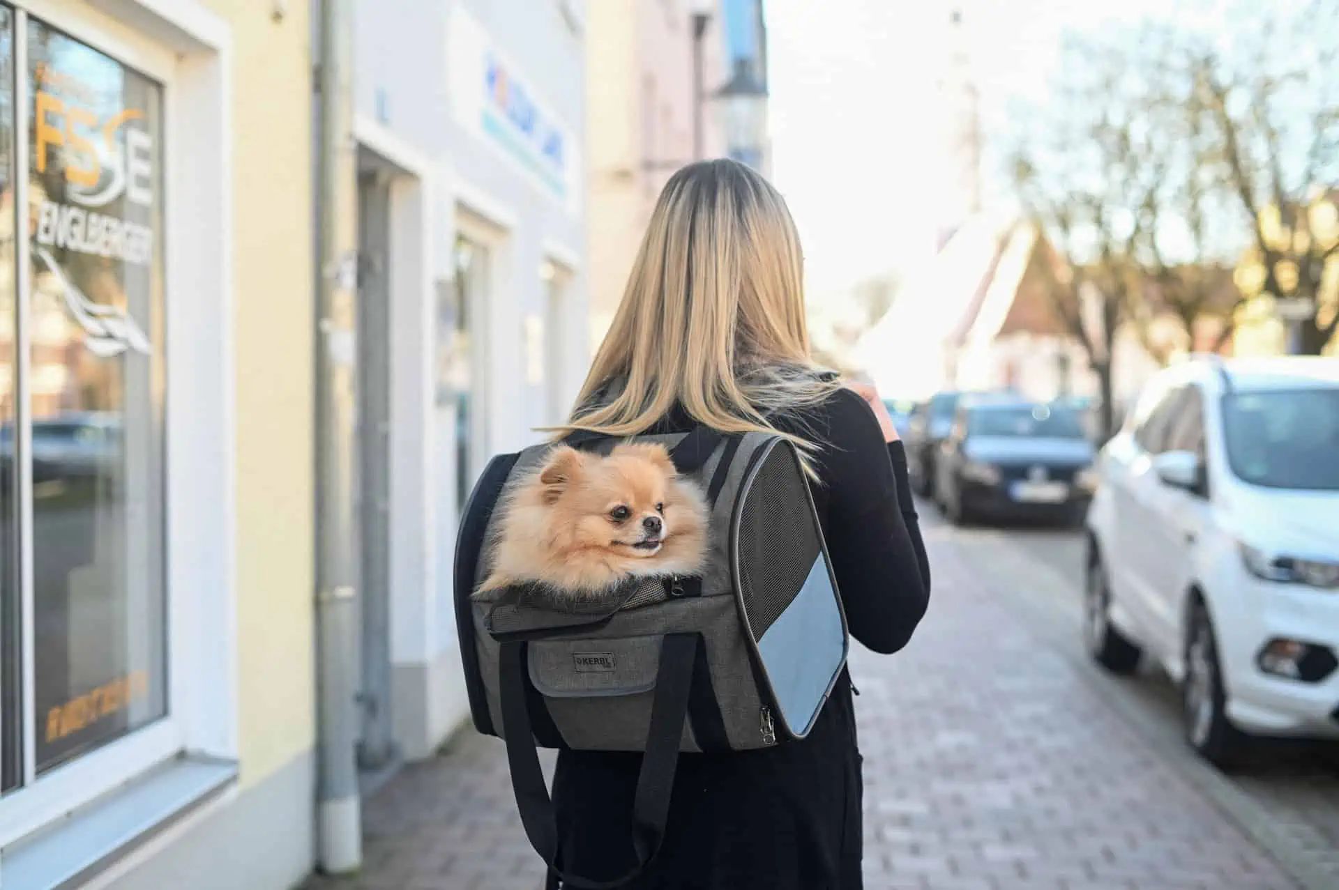 Väskan har en kontinuerligt justerbar och vadderad axelrem samt ett midjebälte för optimal säte och håll. En ökad rygg- och golvyta säkerställer ytterligare komfort för både människor och djuret. Den integrerade kortlinjen håller ditt husdjur säkert i ryggsäcken och förhindrar att det hoppar ut.