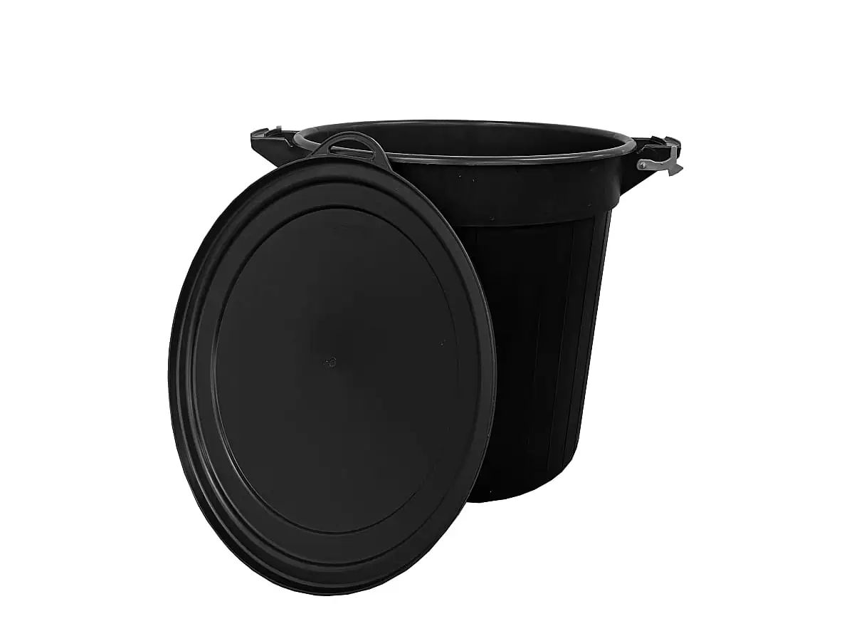 Foderlåda med lock 80 liter svart